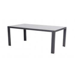 Praktický a moderný záhradný stôl štvorcového tvaru. Jednoduché a čisté línie stola sú vhodné do akéhokoľvek prostredia. Celý stôl je vyrobený z kvalitnej hliníkovej zliatiny v antracitovej farbe. Doska stola je rebrovaná. Na nohách sú nastavovacie kolieska na prípadné vyrovnanie nerovného povrchu.
