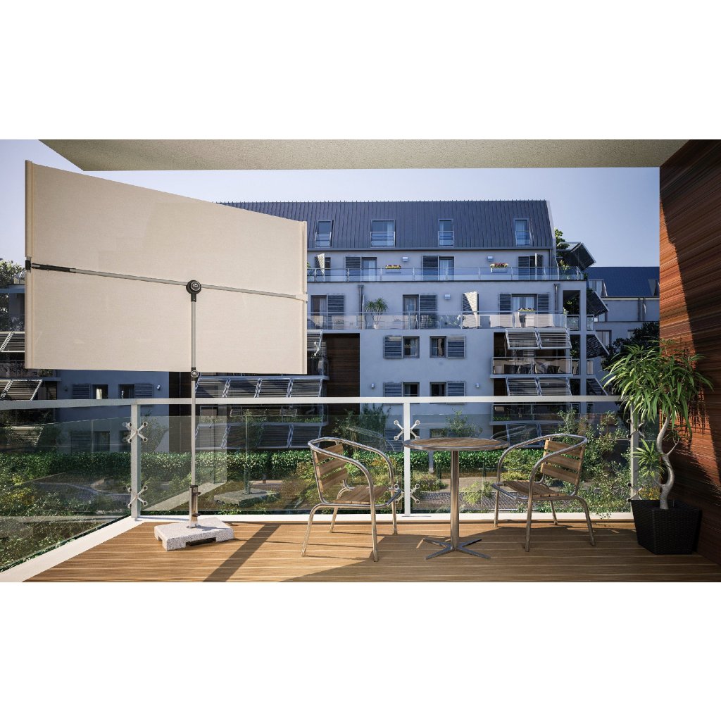 Balkónová clona je špeciálne určená pre balkóny a je prispôsobiteľná pohybu slnka. Je univerzálna, pretože ju možno otáčať o 360°, nastaviť výšku alebo nakloniť / posunúť na stranu. Balkónová clona je vhodná nielen pre balkóny, ale aj vďaka mnohým funkciám pre záhradu a terasu. Clona je vyrobená z nepremokavej polyesterovej tkaniny, ktorá má dobrú UV ochranu 50+. Ďalšou výhodou je, že clona je snímateľná a je ju možné prať v ruke maximálne na 40 °C.
