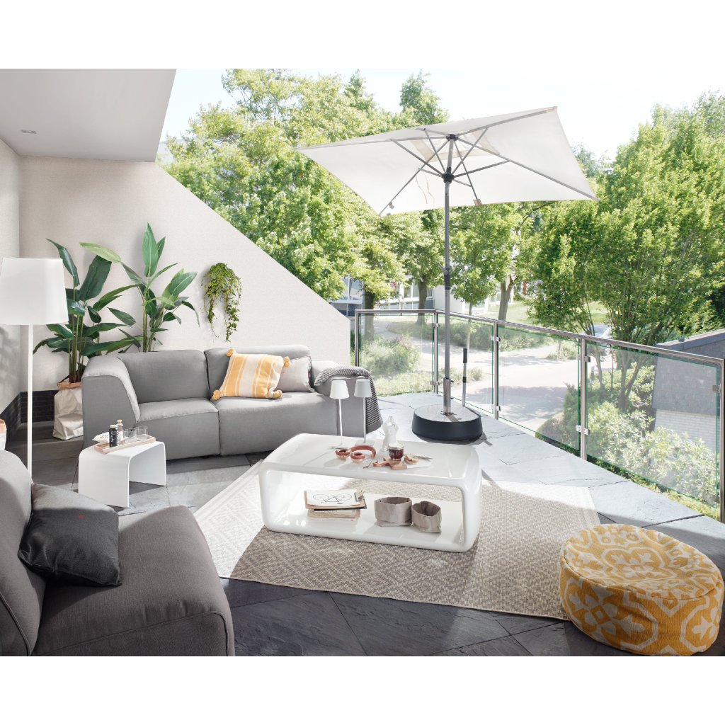 Komfortná funkcia automatického naklápania umožňuje naklopenie strechy iba otočením kľuky. Poťah slnečníka je vyrobený zo 100% polyesterovej tkaniny odolnej voči poveternostným vplyvom s dobrou stálosťou na svetle a dobrou UV ochranou 50+. Moderné farby tohto slnečníka vám spríjemnia pobyt na záhrade alebo na terase. Vďaka ventilačnému otvoru v streche sa pod slnečníkom nekumuluje horúci letný vzduch a slnečník je tak aj odolnejší proti poryvom vetra.