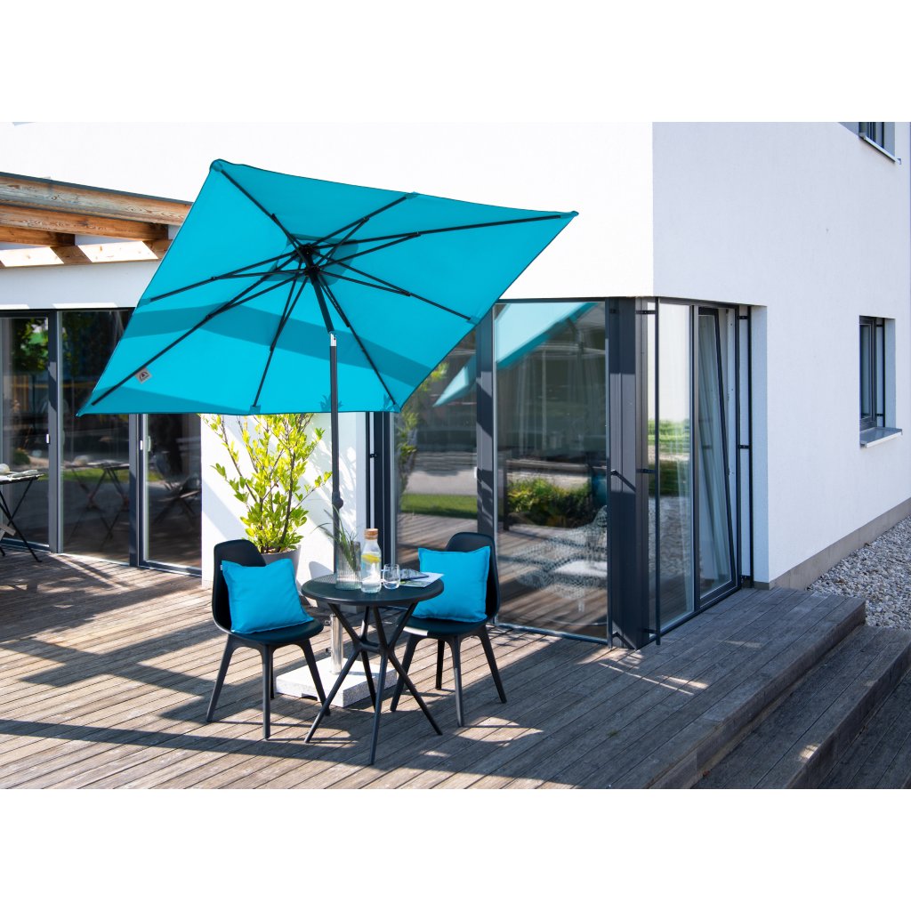 | Vlastnosti a funkcie: | Odolný poveternostným vplyvom, Výškovo nastaviteľný, Otočný okolo osi, Naklápacie, Snímateľný/ručne prateľný poťah slnečníka |