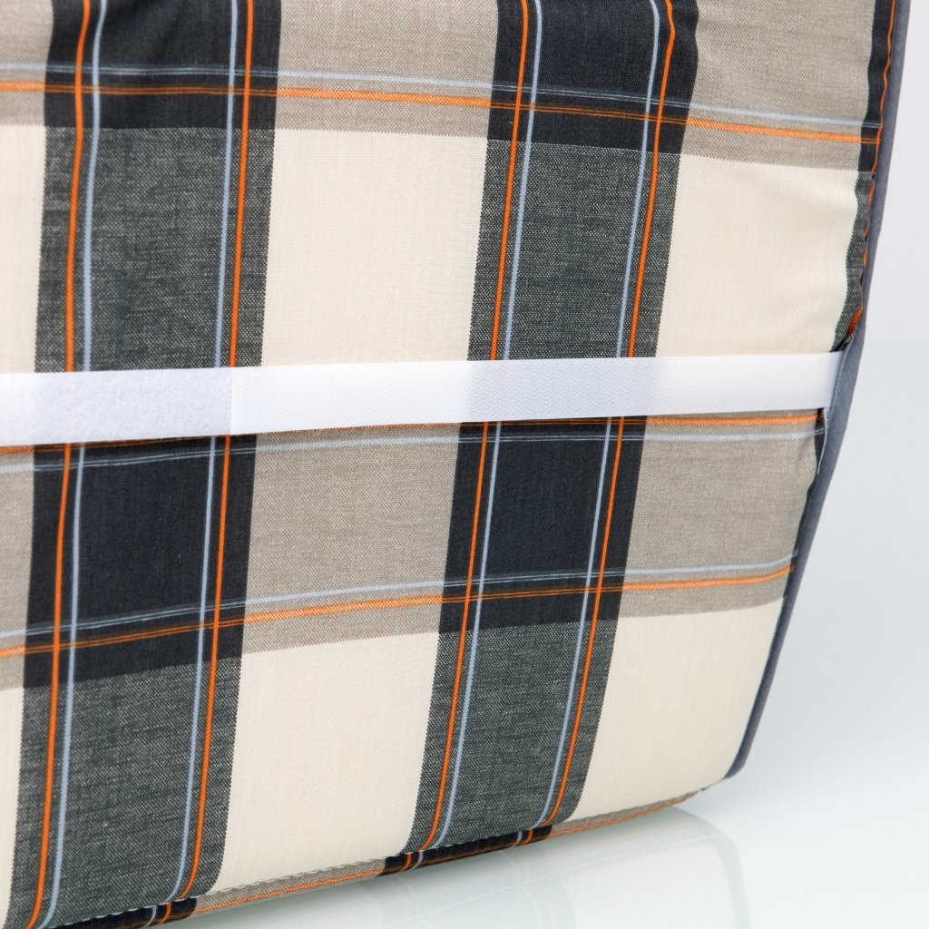 Poťah D - 24 je vo vyhotovení s obšitým lemom a zaoblenými rohmi, bez prešitia na opierke. Uchytenie poťahu je pomocou suchého zipsu za opierkou. Poťah je nesnímateľný. Odporúčame na stoličky so zaobleným okrajom chrbtovej opierky.