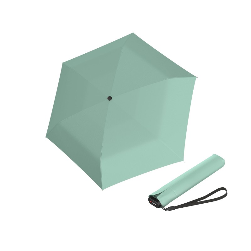 Vďaka plochému dizajnu sa dáždnik vojde do každej tašky či kabelky a je tiež ideálny na cestovanie. Vďaka svojmu štíhlemu telu a rozpätiu strechy 90 cm sa tento dáždnik stane Vašim obľúbeným spoločníkom pre každý deň. Vďaka zosilnenej hrúbke steny rámu a použitiu vysoko kvalitného leteckého hliníka vydrží tento vreckový dáždnik Knirps nárazy vetra až 100 km/h.