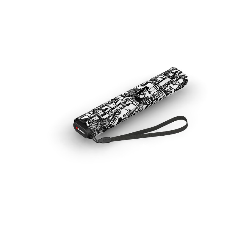 Vďaka plochému dizajnu sa dáždnik vojde do každej tašky či kabelky a je tiež ideálny na cestovanie. Vďaka svojmu štíhlemu telu a rozpätiu strechy 90 cm sa tento dáždnik stane Vašim obľúbeným spoločníkom pre každý deň. Vďaka zosilnenej hrúbke steny rámu a použitiu vysoko kvalitného leteckého hliníka vydrží tento vreckový dáždnik Knirps nárazy vetra až 100 km/h.