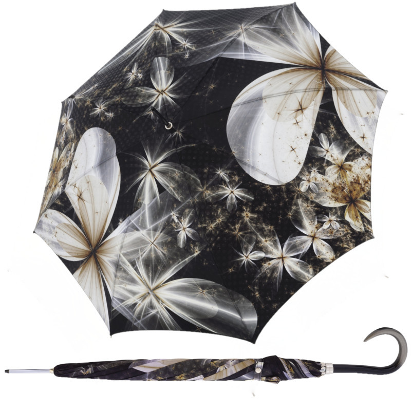 Exkluzívny luxusný dámsky holový vystreľovací dáždnik z radu Doppler Manufaktur Boheme, ktorý je ručne vyrobený v Rakúsku. Poťah s kvetinovým vzorom na čiernom pozadí zaujme každú dámu a pomôže jej vyniknúť. Strecha dáždnika je vyrobená z vysoko kvalitnej talianskej žakárovej textílie, ktorá je príjemná na dotyk a dodáva vzoru jemné odlesky. Dáždnik je...