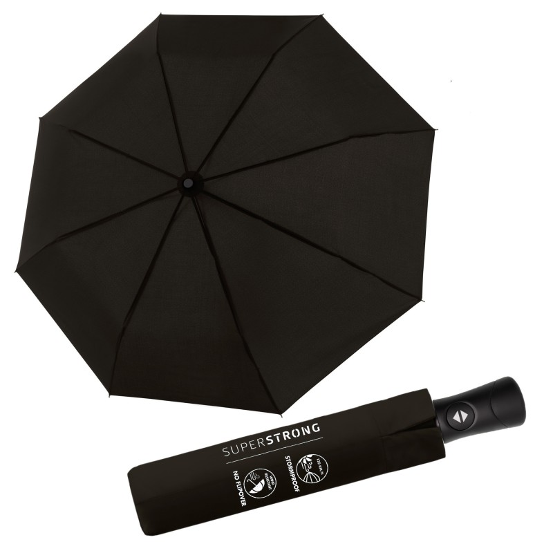 Odolný vočivetru, s inovatívnymi prvkami konštrukcie zabraňujúcimi prevráteniu strechy dáždnika. Testovaný vo veternom tuneli BMW do 120 km/hod. ""Nezničiteľný"" dáždnik.
