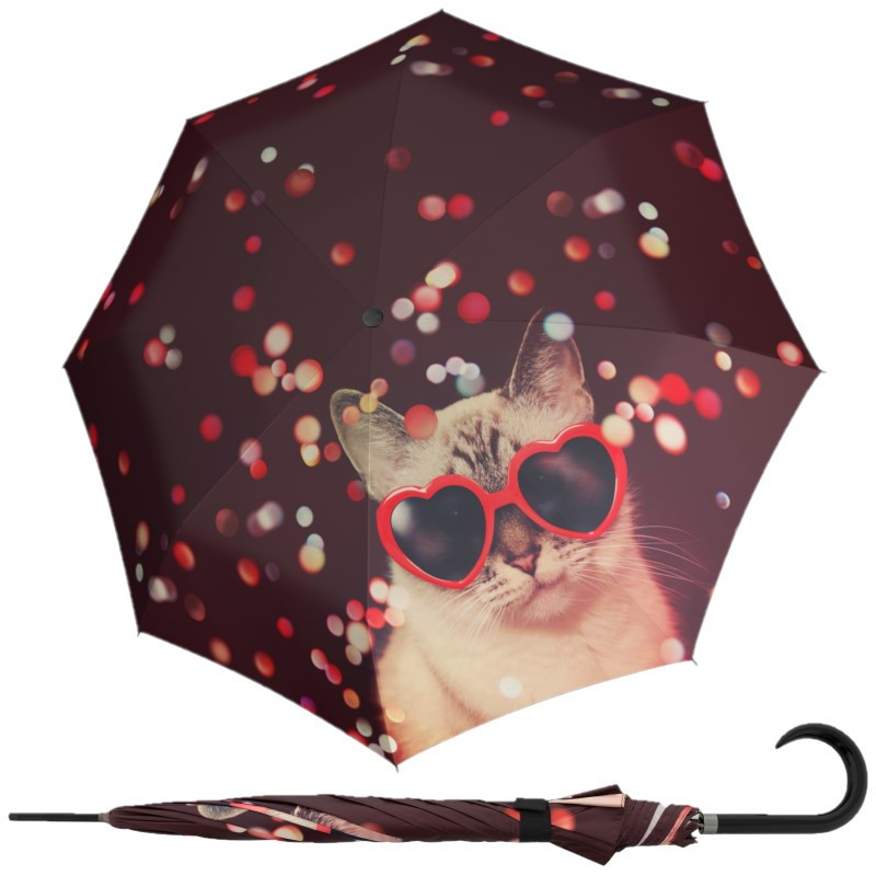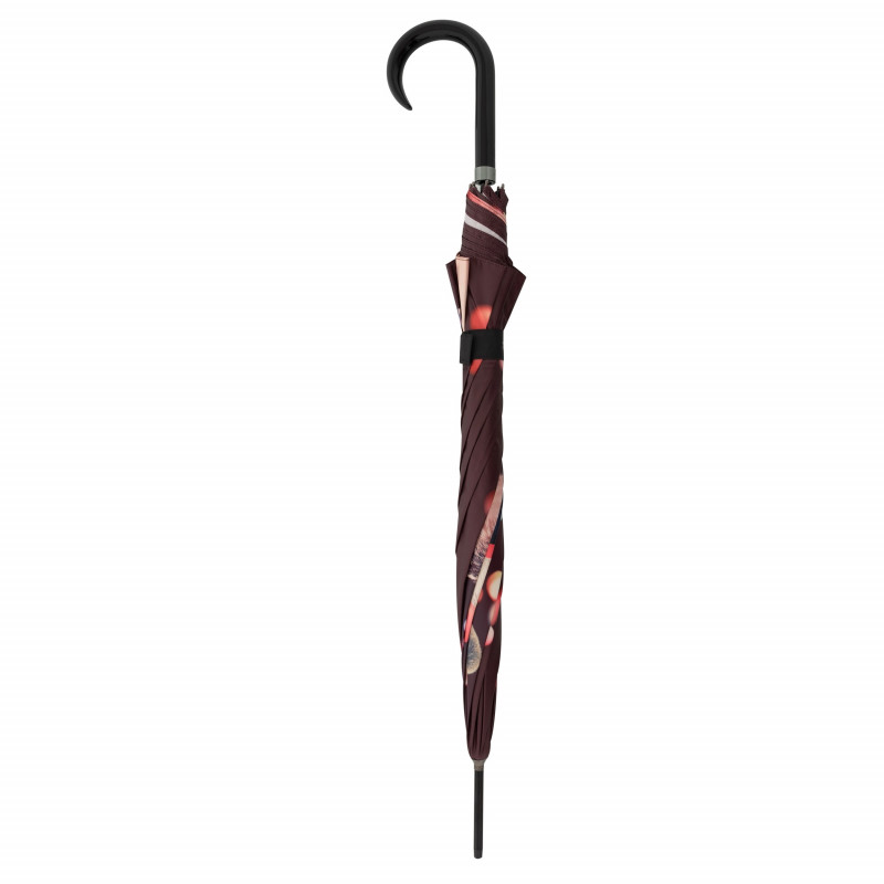 Dámsky plne automatický dáždnik s motívom. Veľmi kvalitná čierna konštrukcia zo sklolaminátu a ocele. Posledné dva diely zo sklolaminátu, pri prevrátení dáždnika vetrom nedôjde k jeho poškodeniu, dáždnik sa ľahko preklopí späť do pôvodnej polohy.Polyesterový poťah je odolný voči zmenám vlhkosti a teplôt, nezráža sa.