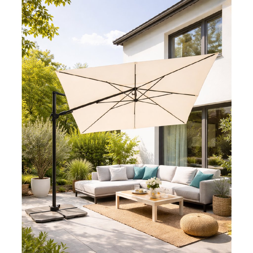| Kategória: | Záhradné slnečníky s bočnou nohou |