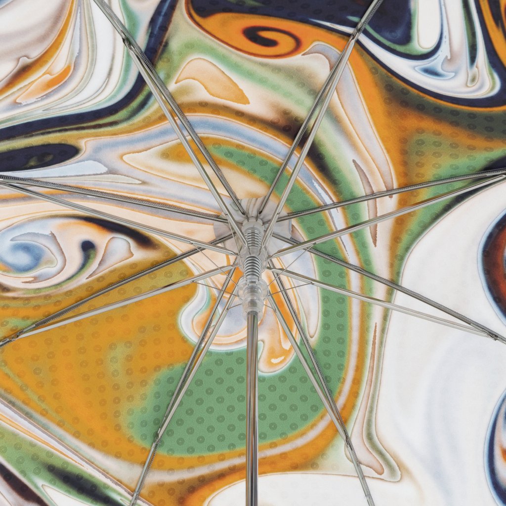Strecha dáždnika je vyrobená z vysoko kvalitnej talianskej žakárovej textílie - nápadité živé vzory s odleskami, textília príjemná na dotyk.
