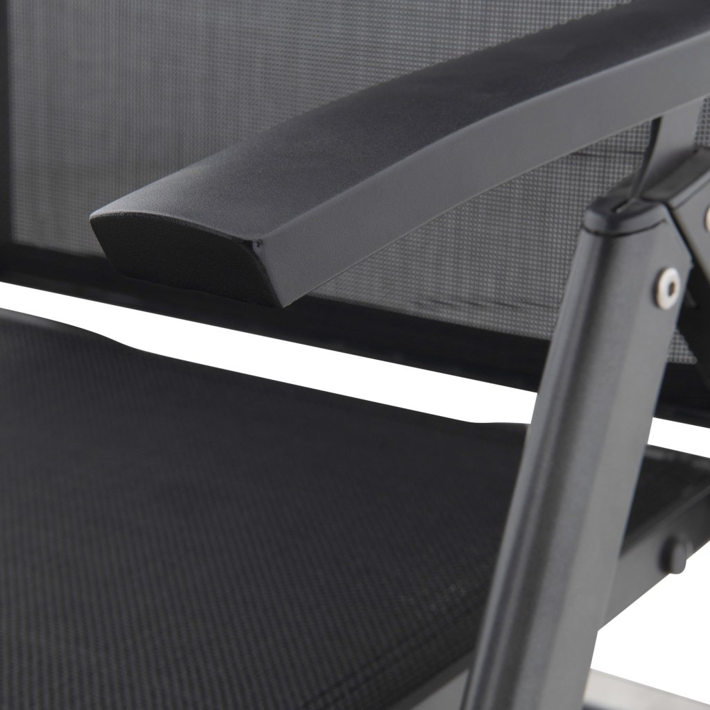 Záhradné polohovacie kreslo EXPERT je vyrobené z bezúdržbových materiálov. Pevná hliníková konštrukcia v antracitovej farbe je doplnená výpletom z kvalitnej umelej textílie v čiernej farbe. 7-stupňový polohovací systém opierky zaručí maximálne komfortný odpočinok. Všetko dopĺňajú stabilné hliníkové podrúčky.