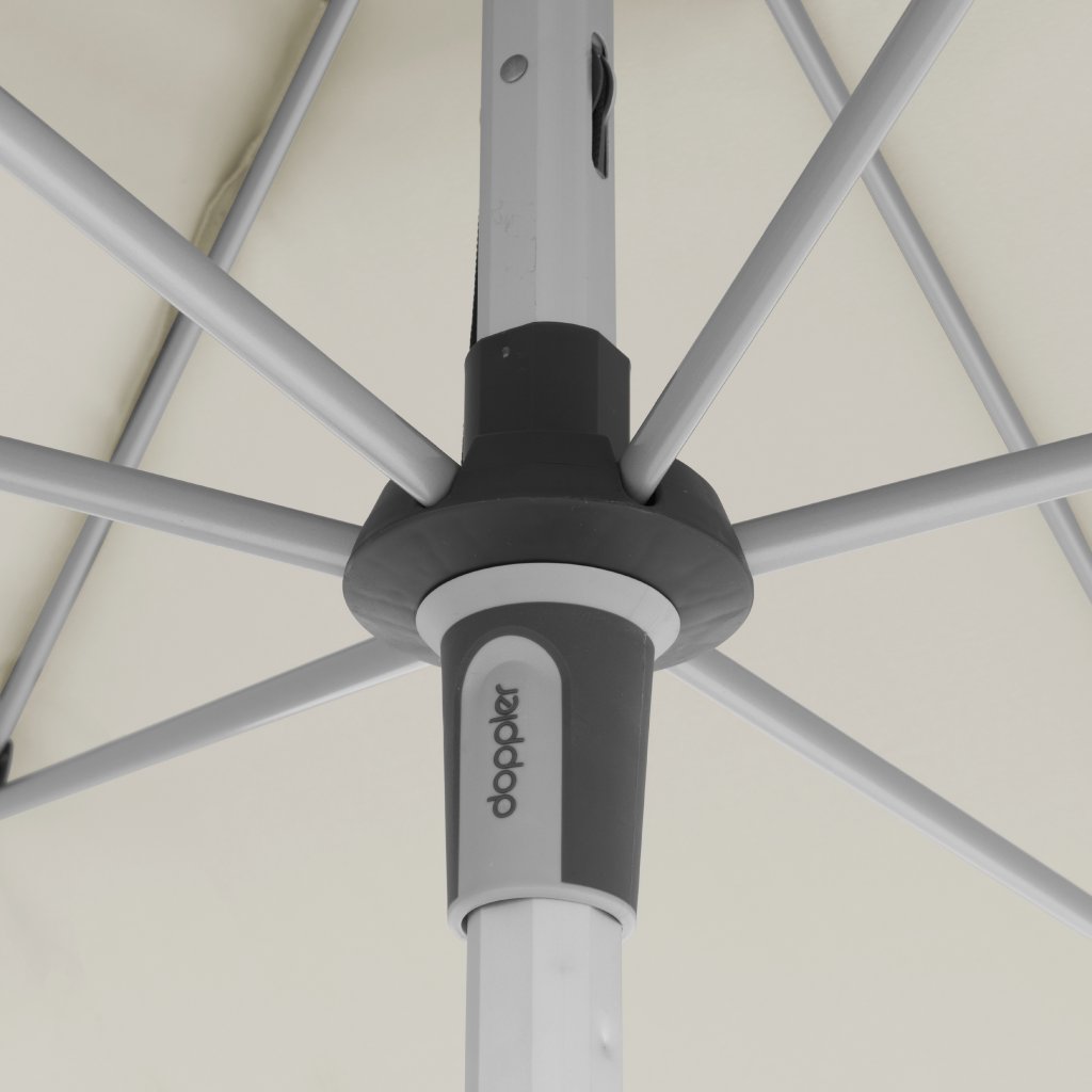 Kvalitný a moderný slnečník s kľučkou je ideálnym spoločníkom na balkón, terasu alebo záhradu. Slnečník má kvalitnú hliníkovú konštrukciu a funkciu automatického naklápacieho kĺbu. Je možné nastaviť výšku o 30 cm. Poťah je vyroben z 100% polyesterovej tkaniny odolnej voči poveternostným vplyvom s dobrou UV ochranou 80+. Poťah slnečníka je snímateľný pre ručné pranie. Vďaka ventilačnému otvoru v streche sa pod slnečníkom nekumuluje horúci letný vzduch.