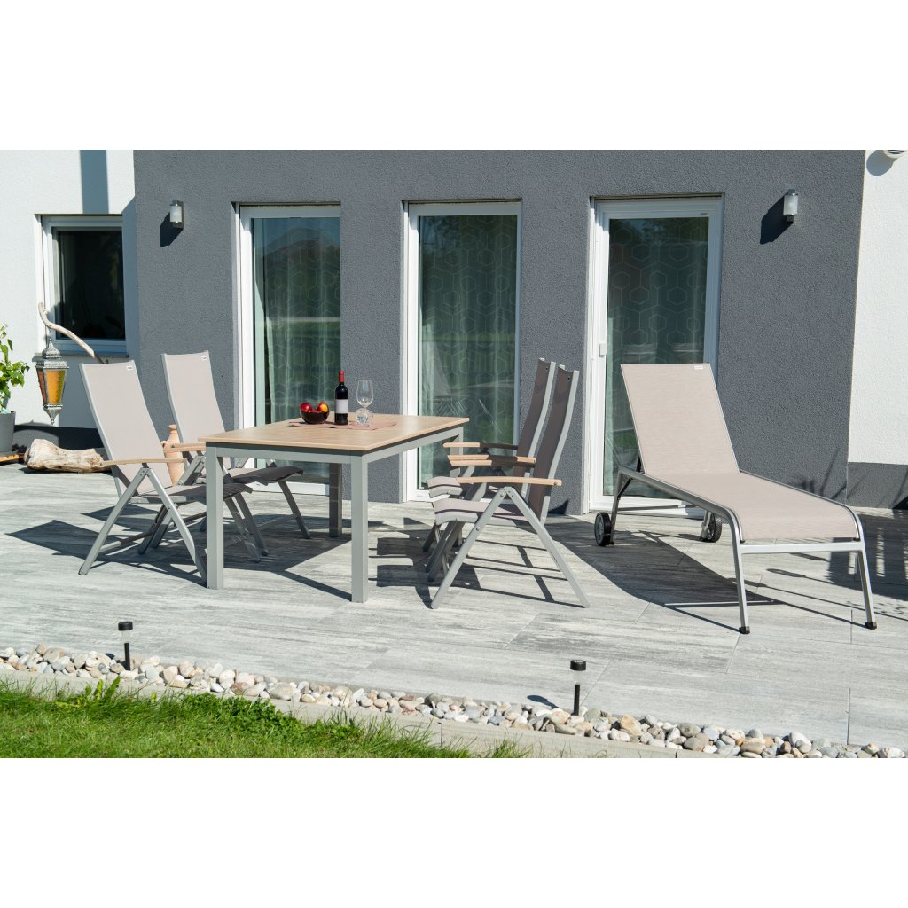 Rozkladací stôl EXPERT WOOD má odolnú hliníkovú konštrukciu vo svetlosivej farbe. Rebrovaná hliníková doska stola má práškový nástrek v dekore dreva. Stôl pre svoju ľahkosť, nenáročnosť na údržbu a odolnosť poveternostným vplyvom je skvelým doplnkom nábytku pre Vašu záhradu alebo terasu. Vďaka použitým materiálom je stôl záhradným nábytkom s dlhou životnosťou.