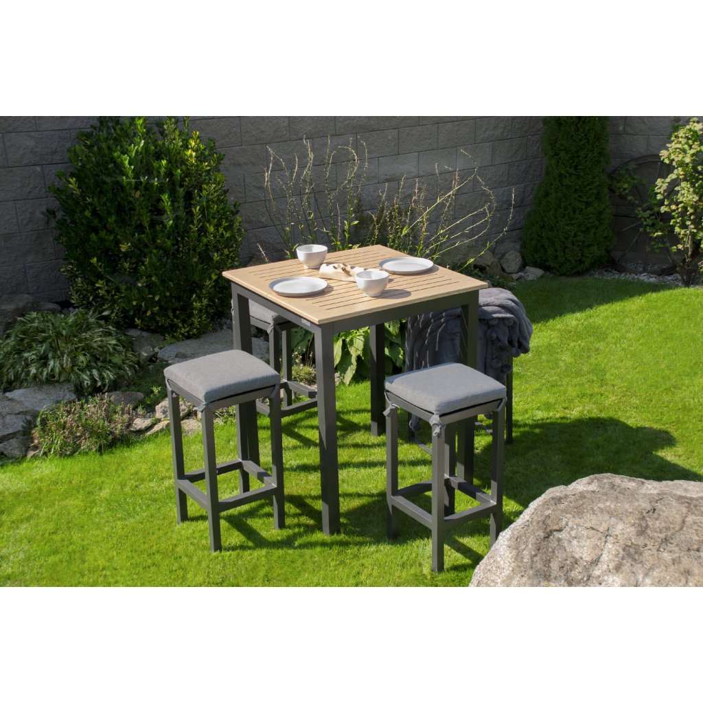 Elegantný a praktický stôl EXPERT WOOD antracit ponúka skvelé riešenie pre všetkých, ktorí hľadajú kompromis medzi funkčnosťou hliníka a estetikou dreva. Stôl má stabilnú celohliníkovú konštrukciu v antracitovej farbe, rebrovaná hliníková doska stola má práškový nástrek v dekore dreva. Výška stola je 110 cm. Vďaka použitým materiálom je stôl ľahký, bezúdržbový a odolný poveternostným vplyvom. Tým sa stáva záhradným nábytkom s dlhou životnosťou.
