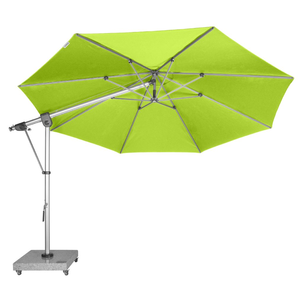Slnečník je otočný o 360° a disponuje bočným naklápaním, takže ho môžete ľahko prispôsobiť pohybu slnka. Dlhodobo bezproblémovú prevádzku pri otváraní a zatváraní slnečníka zaisťuje novo vyvinutý ozubený hnací remeň a kvalitná európska výroba.