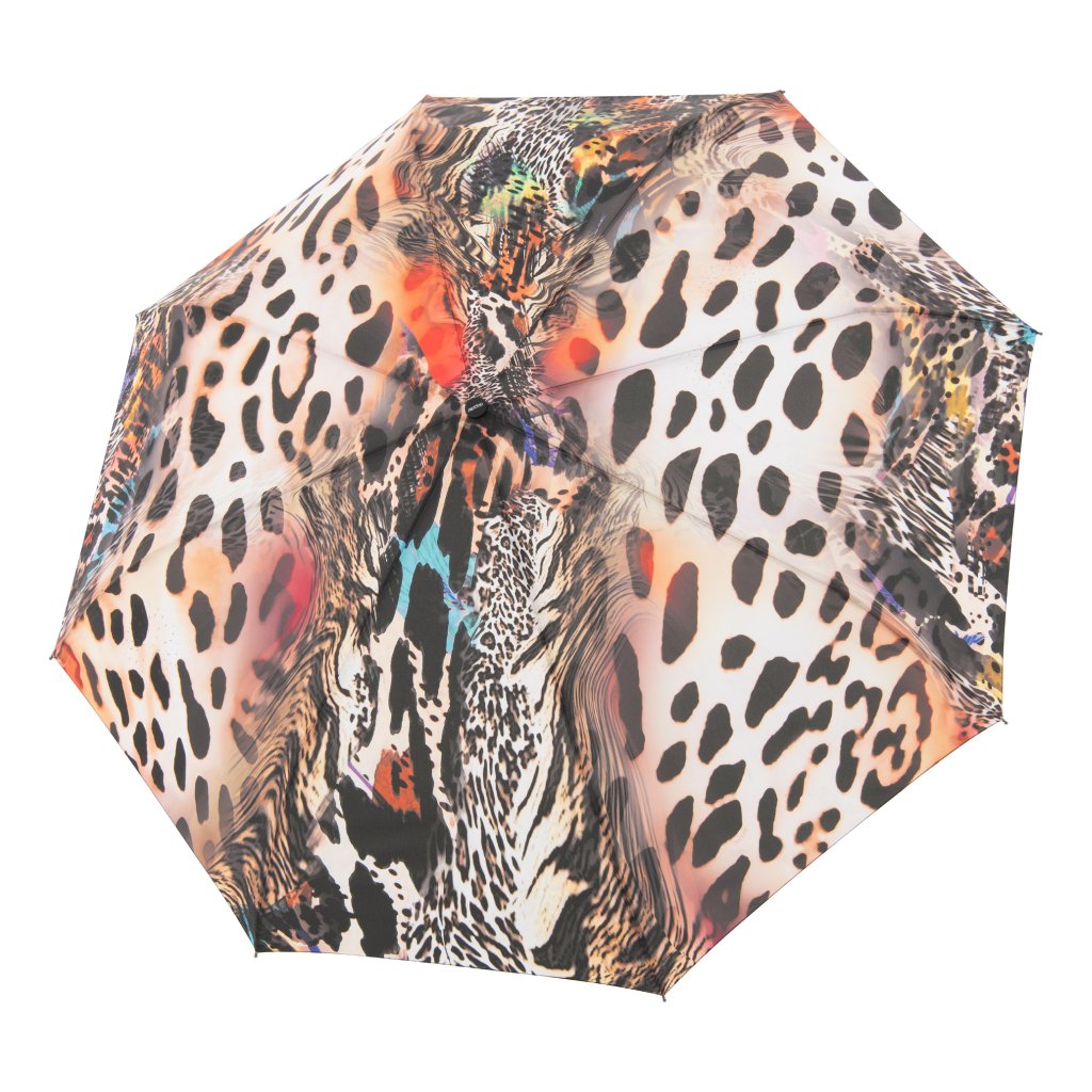 Kvalitný a elegantný dámsky plne automatický dáždnik s motívmi safari. Veľmi kvalitná, výrazná potlač. Konštrukcia dáždnika je vyrobená v kombinácii materiálov oceľ / sklolaminát a zaručuje pevnosť a stabilitu.