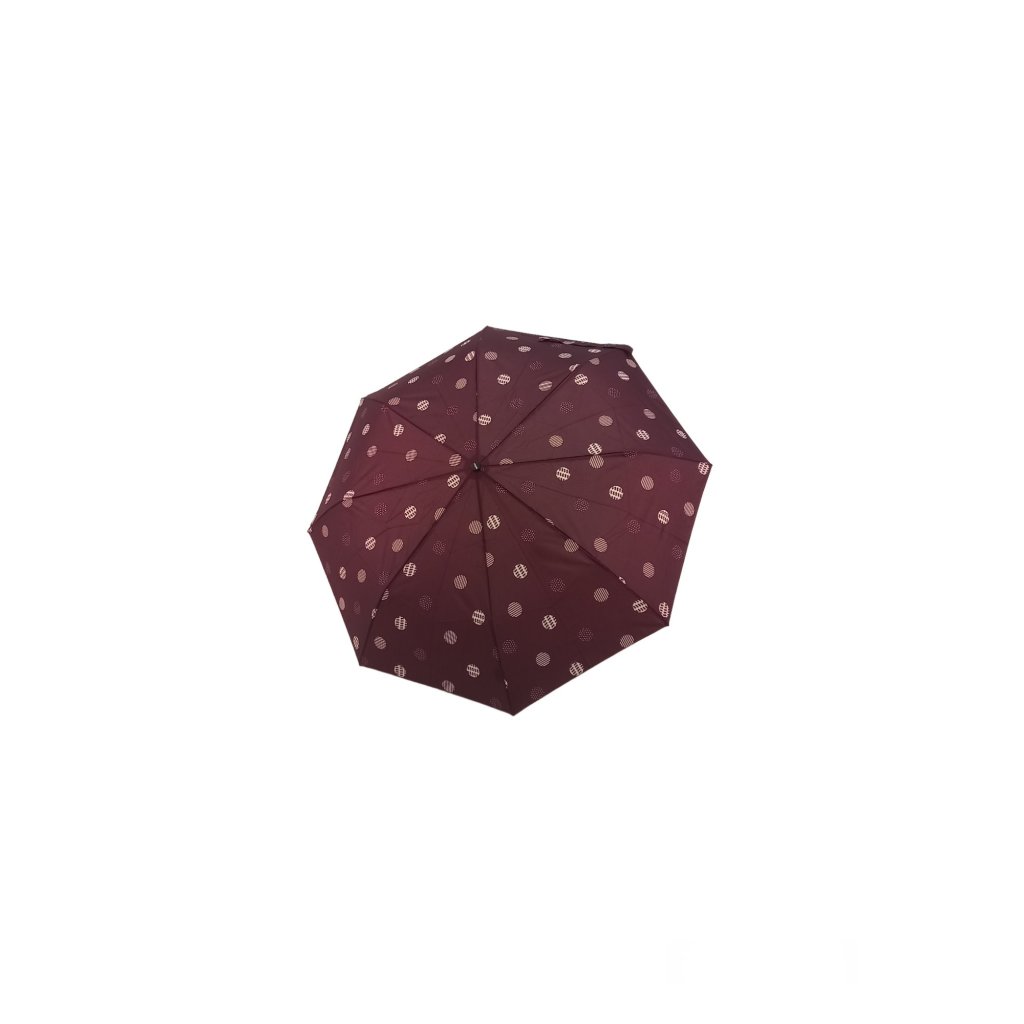 Dámsky skladací dáždnik z kvalitnej konštrukcie zo sklolaminátu, ocele a hliníka. Dáždnik sa ľahko preklopí späť do pôvodnej polohy. Farebne ladiaca rúčka s poťahom. Dáždnik je vhodný do kabelky a má veľkú strechu. Kvalitný ľahký supertenký rýchloschnúci polyesterový poťah.