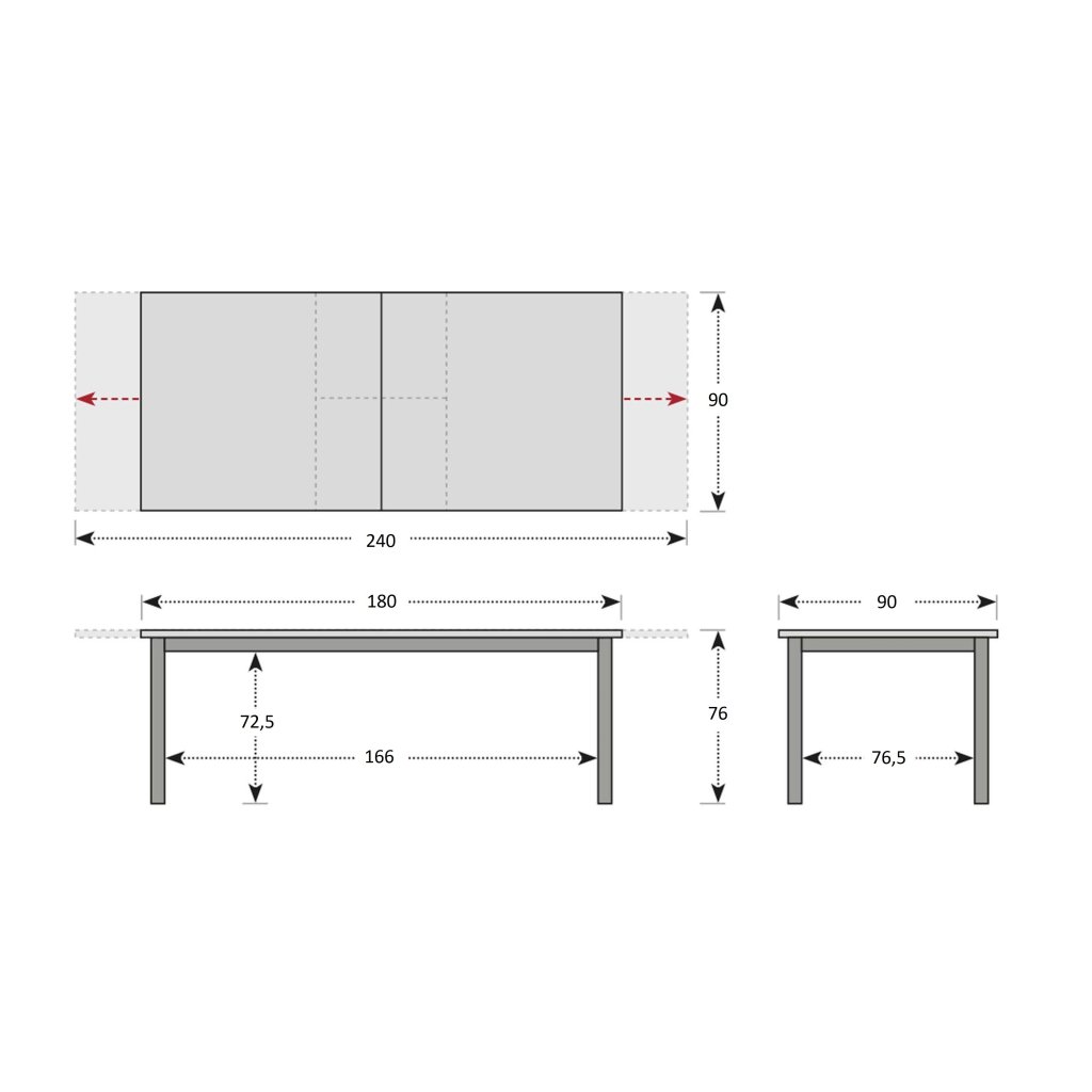 rozkladací hliníkový stôl, 180/240x90x75 cm |