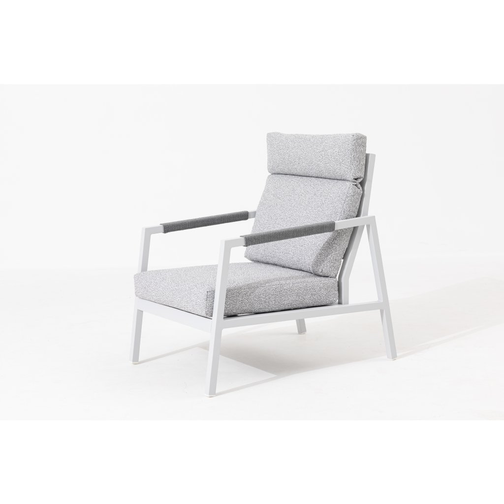 Ľahká hliníková konštrukcia v nadčasovej bielej farbe zabezpečuje nielen pevnosť a stabilitu, ale aj jednoduchú manipuláciu. Set je ideálny na každodenné použitie na terase, balkóne či záhrade, kde si užijete relaxáciu na čerstvom vzduchu.