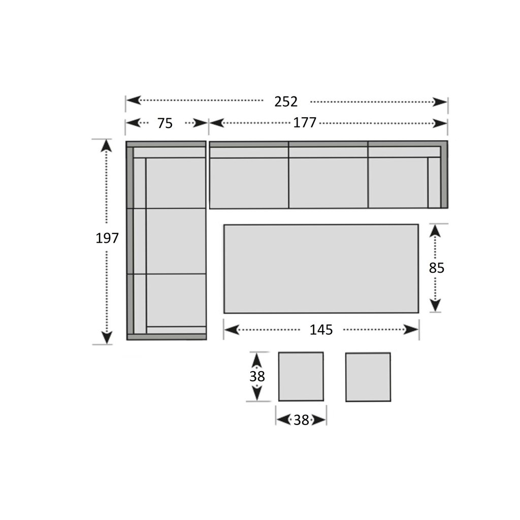 - rozmery rohovej pohovky: 197/252 x 75 x 83 cm (šírka x hĺbka x výška)