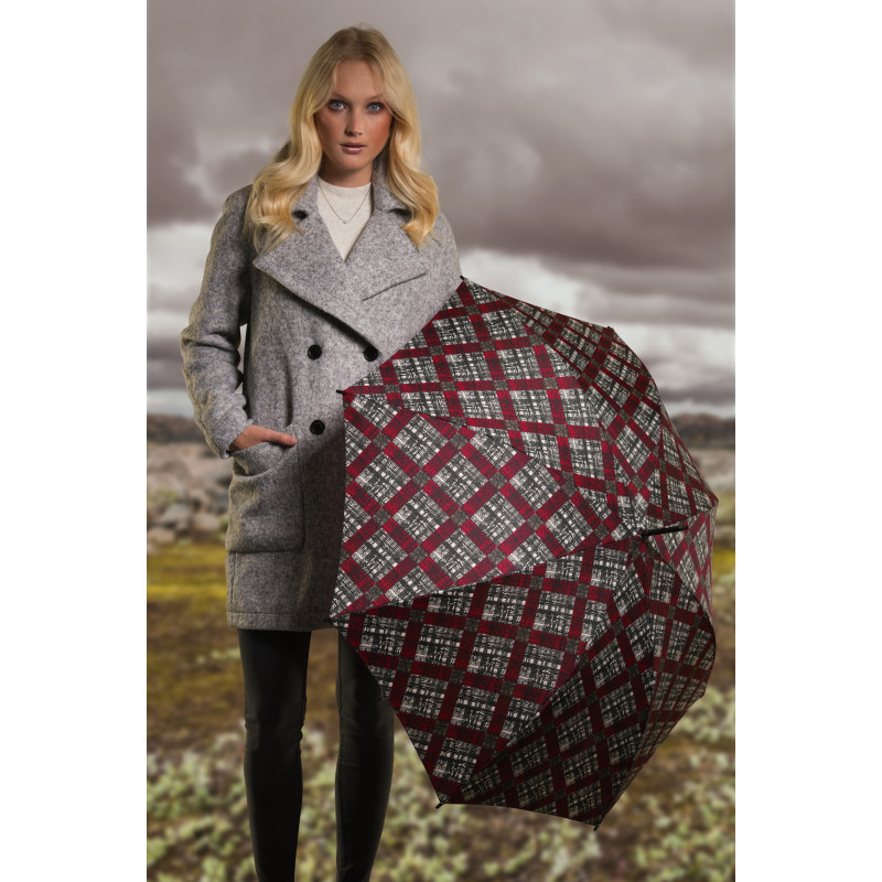 Špičkový holový dámsky dáždnik značky Doppler Fiber Flex Long AC Paisley berry v modernom prevedení. Stabilný vďaka konštrukcii zo sklolaminátu a ocele.