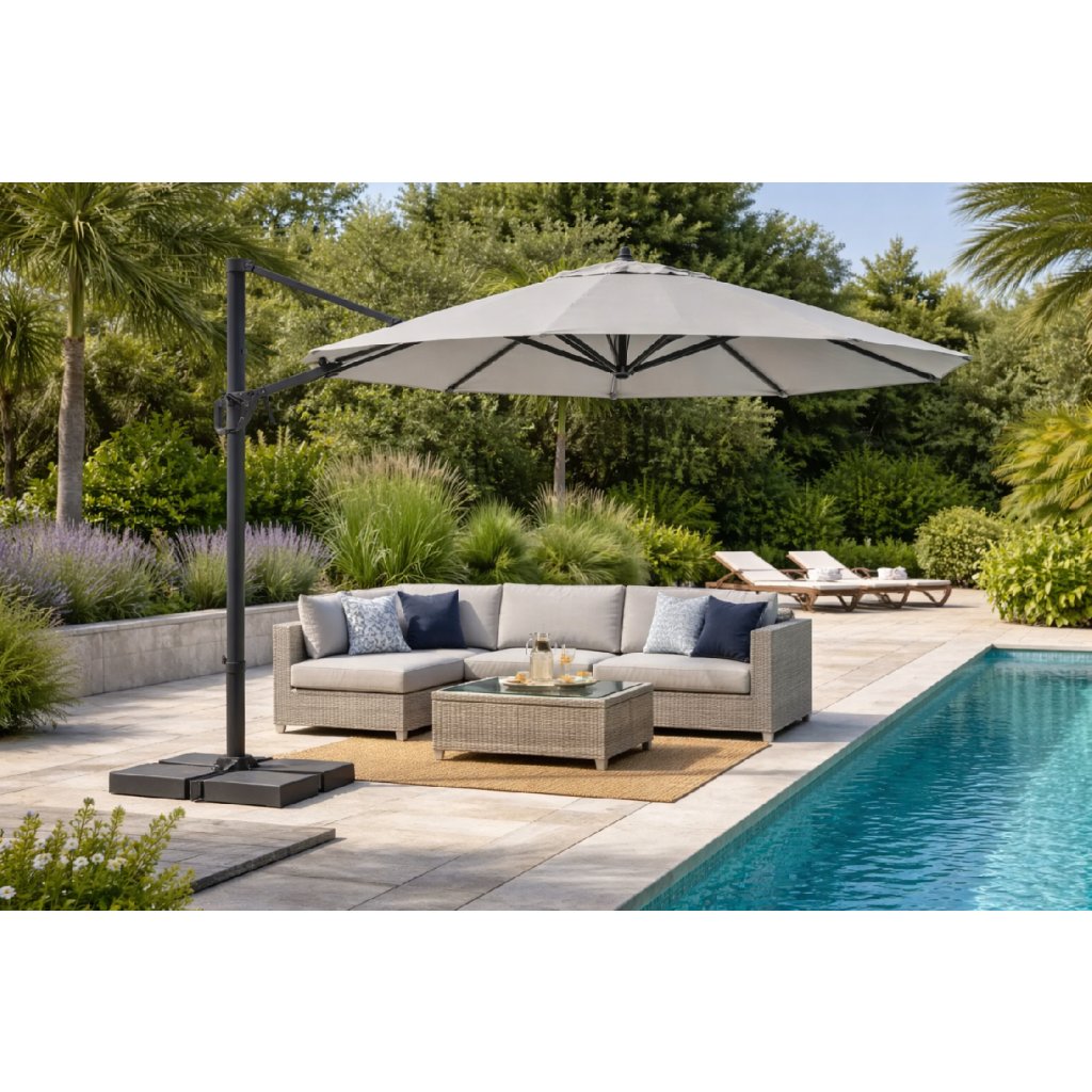 | Kategória: | Záhradné slnečníky s bočnou nohou |