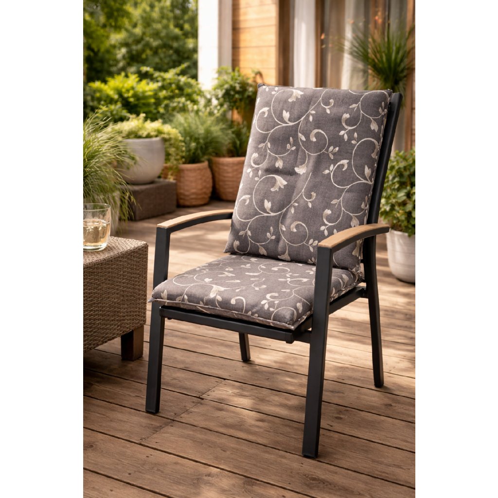 Poťah so strednou opierkou rady LIVING je v prevedení s obšitým lemom, prešitý krúžkovo 2x v opieradle. Uchytenie je pomocou posuvnej spony. Vďaka spone si môžete nastaviť veľkosť podľa rozmeru a druhu stoličky, spona je pevná a nevytahuje sa. Upevnenie sedadla je pomocou dvoch šnúrok v ohybe poťahu. Hrúbka poťahu je optimálna pre všetky druhy stoličiek. Prevedenie je vhodné aj do náročných podmienok kaviarní, záhradiek a reštaurácií. Poťah je nesnímateľný.