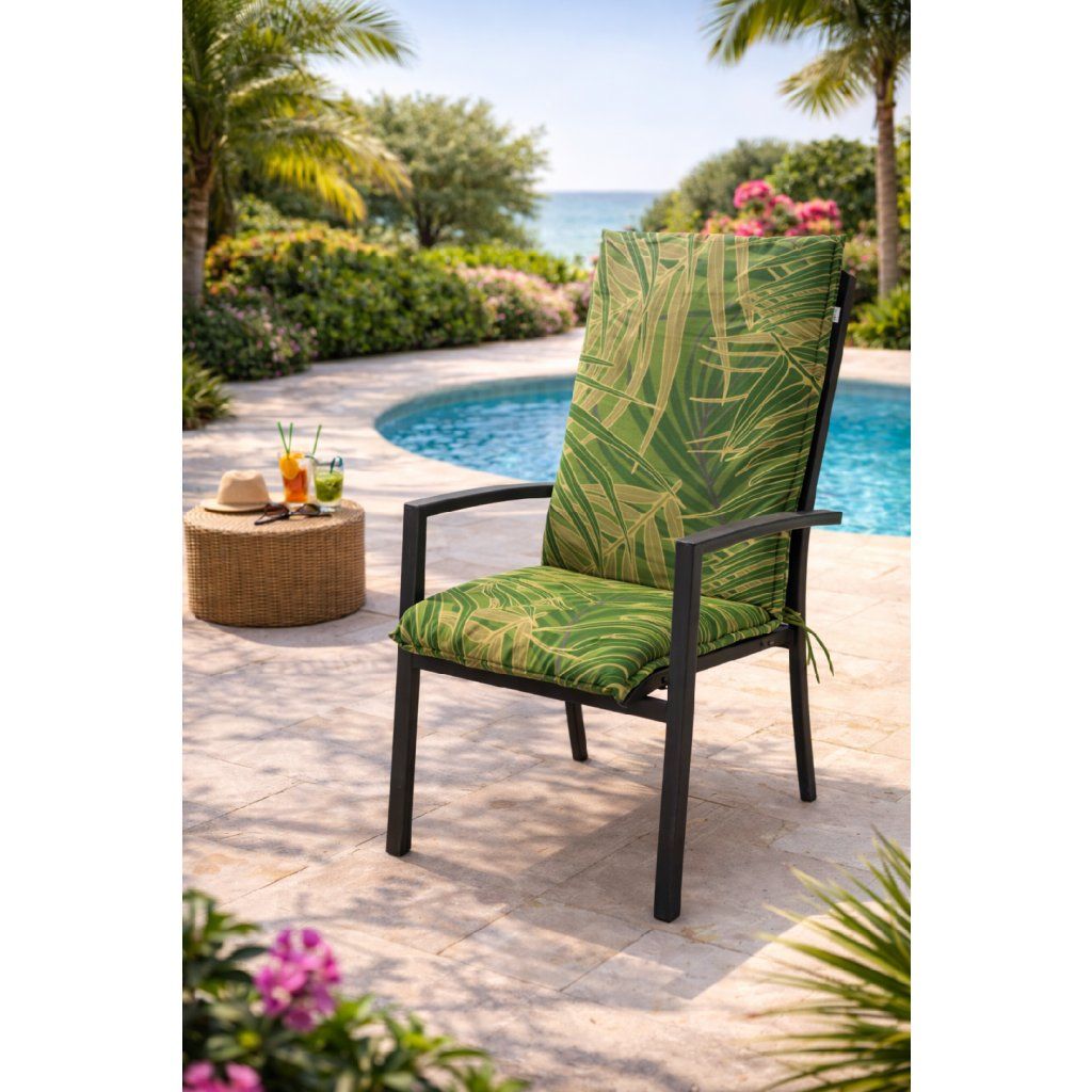 Polster so strednou opierkou radu LIVING je v prevedení s obšitým lemom, prešitý krúžkovo 2x v operadle. Uchytenie je pomocou posuvnej spony. Vďaka spone si môžete nastaviť veľkosť podľa rozmeru a druhu stoličky, spona je pevná a nevyťahuje sa. Upevnenie sedadla je pomocou dvoch šnúrok v ohybe polstra. Sila polstra je optimálna pre všetky druhy stoličiek. Prevedenie je vhodné aj do náročných podmienok kaviarní, záhradiek a reštaurácií. Poťah je nesnímateľný.