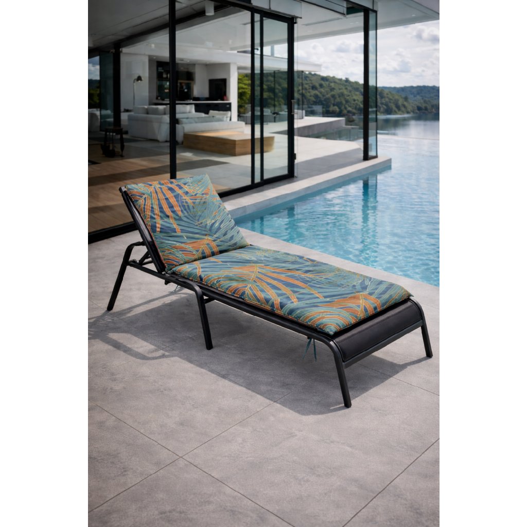 Čalúnenie na záhradné lehátko rady LIVING je v prevedení s obšitým lemom, prešité krúžkovo 4x v operadle. Uchytenie je pomocou posuvnej spony. Vďaka spone si môžete nastaviť veľkosť podľa rozmeru a druhu stoličky, spona je pevná a nevyťahuje sa. Upevnenie sedadla je pomocou dvoch šnúrok v ohybe polstra. Hrúbka poťahu je optimálna pre všetky druhy stoličiek. Vyhotovenie je vhodné aj do náročných podmienok kaviarní, záhradiek a reštaurácií. Poťah je nesnímateľný.