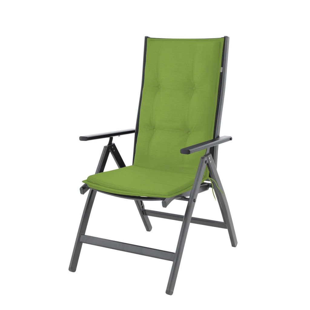 Poduška s vysokou opierkou na záhradný nábytok radu LIVING HIT je v prevedení s obšitým lemom, prešitý do kruhov 4x v operadle. Uchytenie je pomocou posuvnej spony. Vďaka spone si môžete nastaviť veľkosť podľa rozmeru a druhu stoličky, spona je pevná a nevyťahuje sa. Upevnenie sedadla je pomocou dvoch šnúrok v ohybe polstra. Poťah je nesnímateľný.