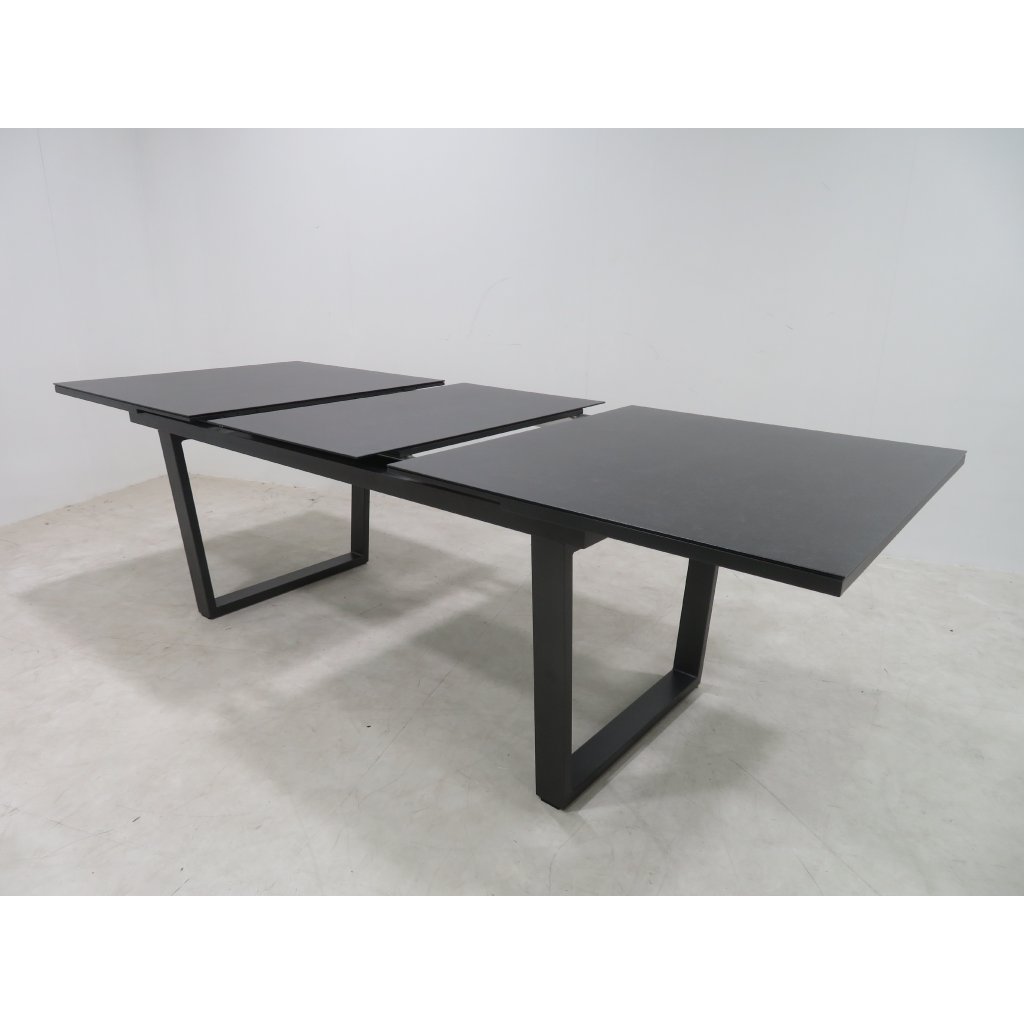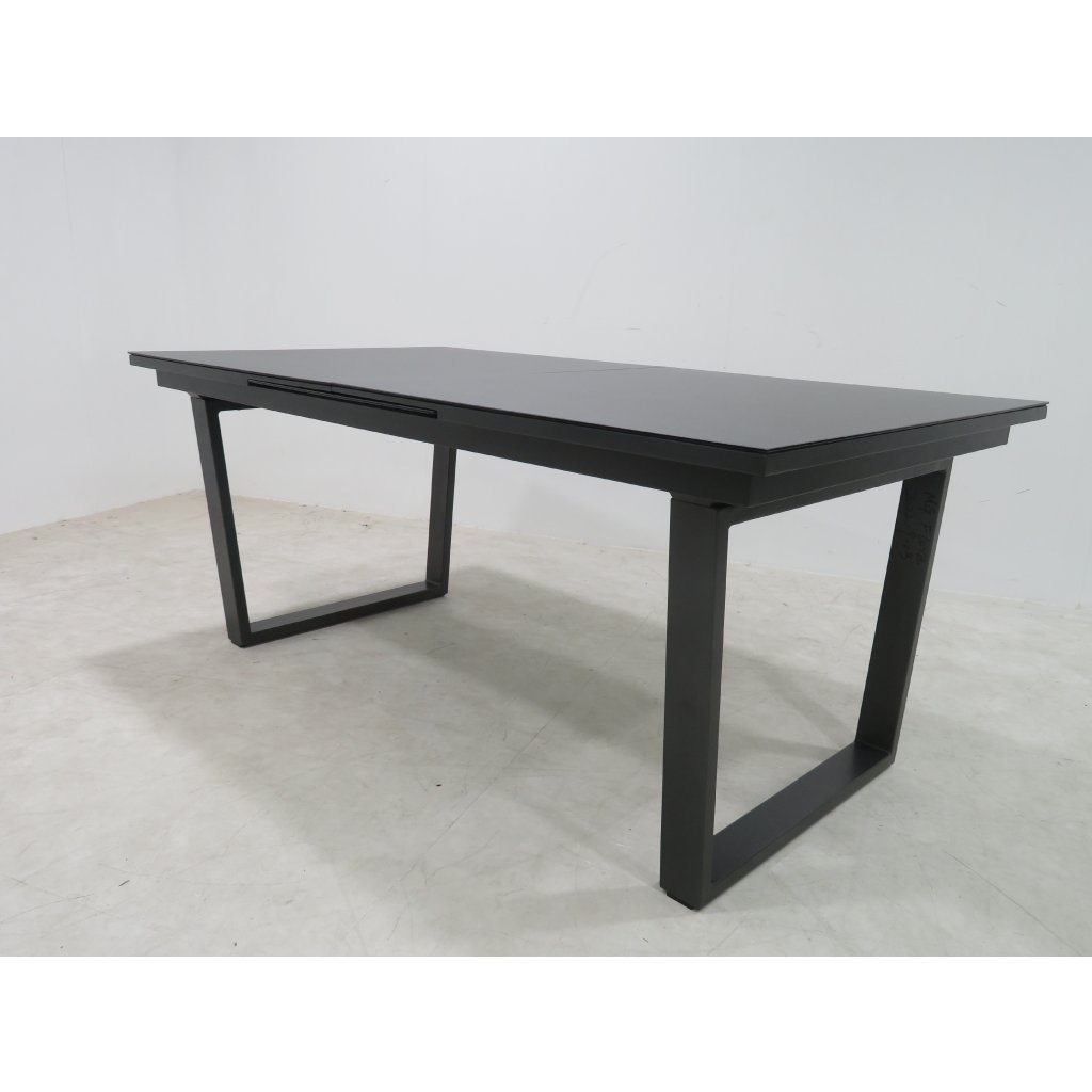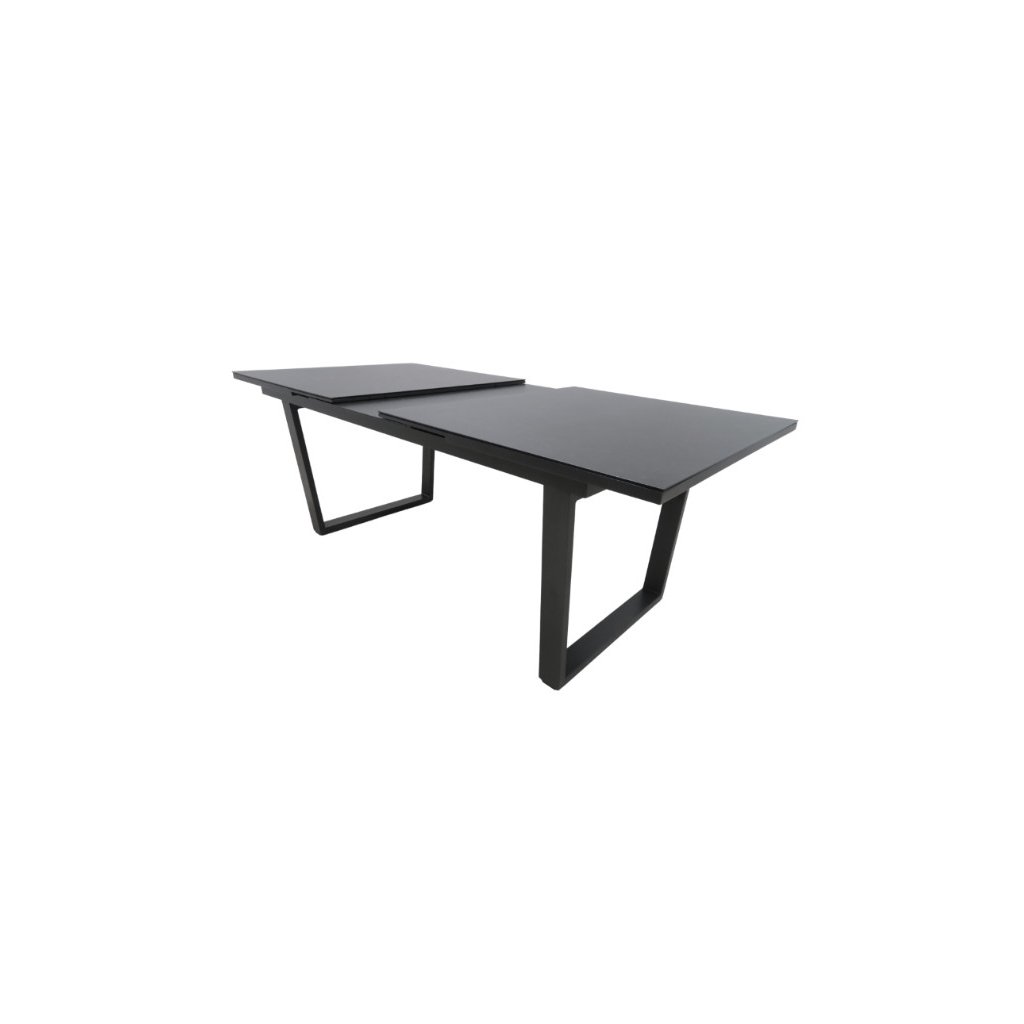 Veľký záhradný rozkladací stôl je moderný, nadčasový záhradný nábytok. Jednoduché a čisté línie stola sú vhodné do každého prostredia. Konštrukcia stola je vyrobená z vysoko kvalitnej hliníkovej zliatiny v antracitovej farbe. Doska stola je z 5mm skla s nástrekom imitujúcim vzhľad keramiky.