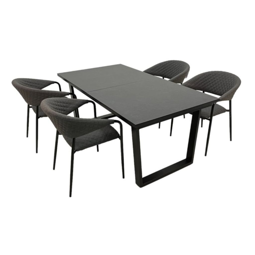 Veľký záhradný rozkladací stôl je moderný, nadčasový záhradný nábytok. Jednoduché a čisté línie stola sú vhodné do každého prostredia. Konštrukcia stola je vyrobená z vysoko kvalitnej hliníkovej zliatiny v antracitovej farbe. Doska stola je z 5mm skla s nástrekom imitujúcim vzhľad keramiky.