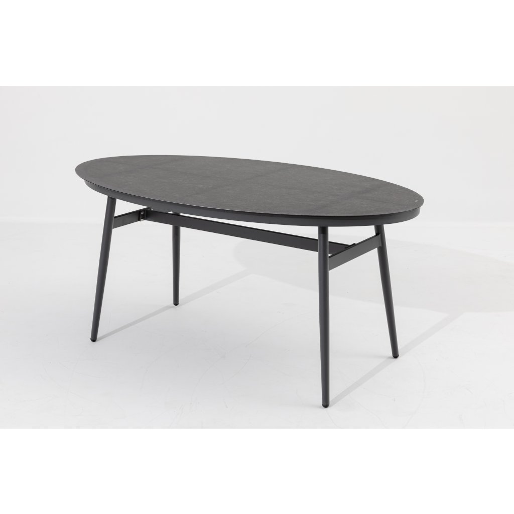 Oválny stolík s doskou z čierneho štruktúrovaného skla, odolného voči odtlačkom, je praktickým doplnkom, ktorý ponúka dostatok priestoru na nápoje a občerstvenie.