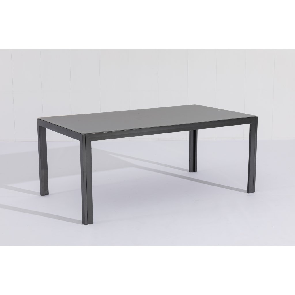 Praktický záhradný hliníkový stôl Luna je nadčasový záhradný nábytok minimalistického vzhľadu. Antracitová farba a jednoduché, čisté línie sú vhodné do každého prostredia, ako na záhradu, tak na terasu. Celý stôl je vyrobený z vysoko kvalitnej hliníkovej zliatiny, doska stola je zo sivého štruktúrovaného skla.
