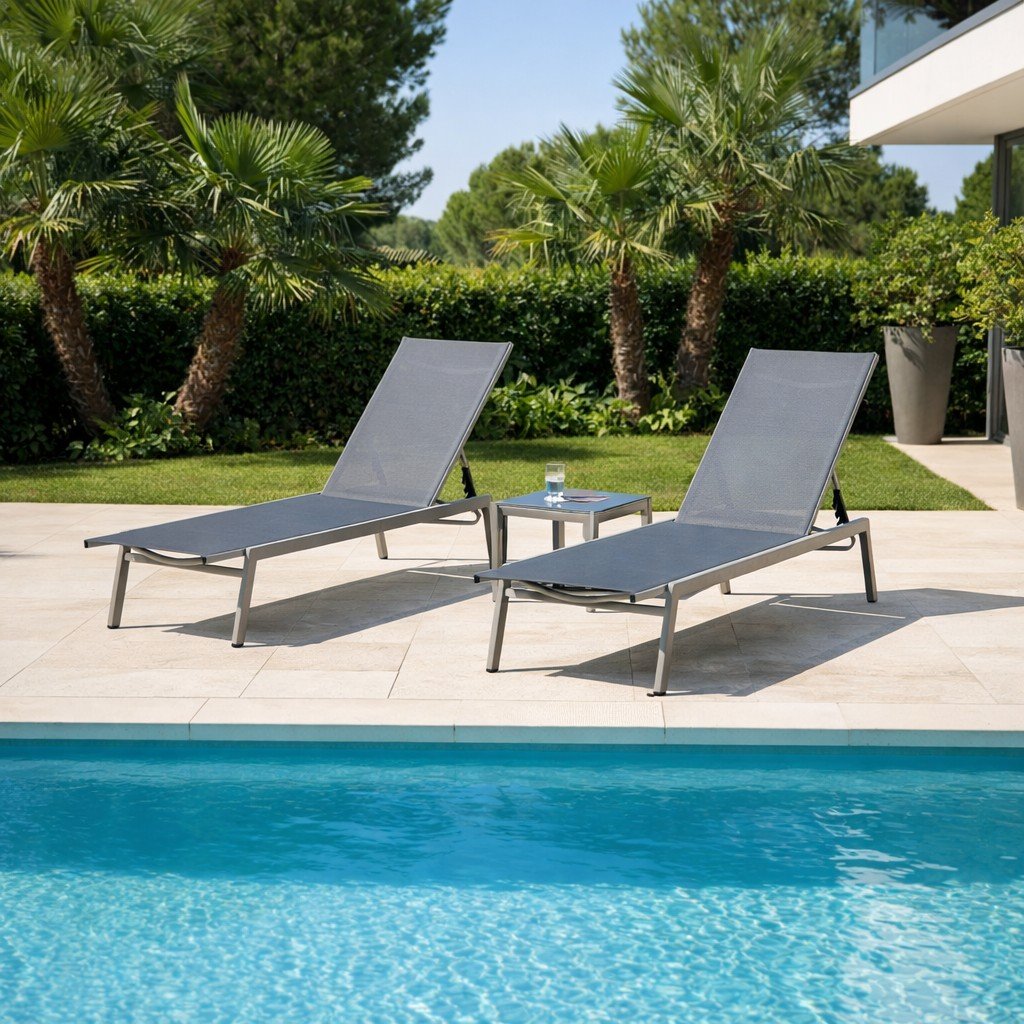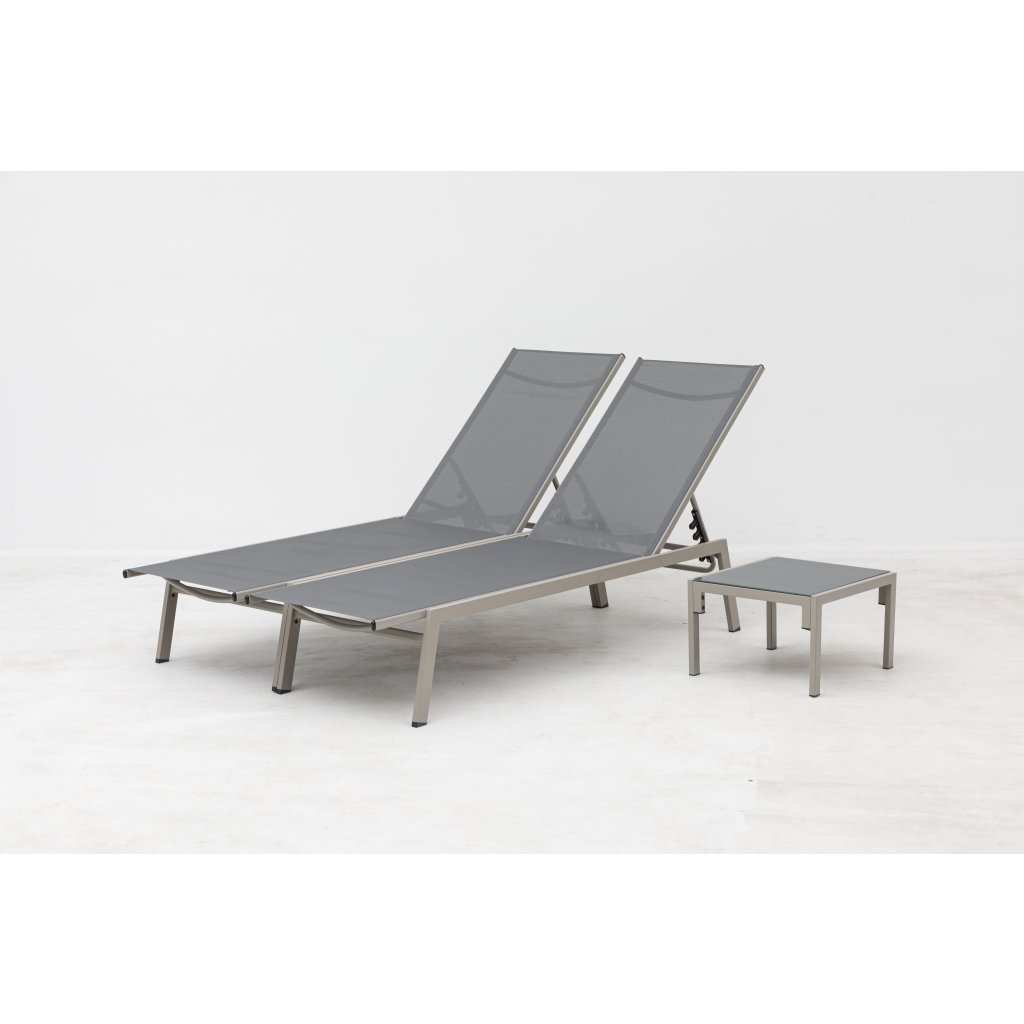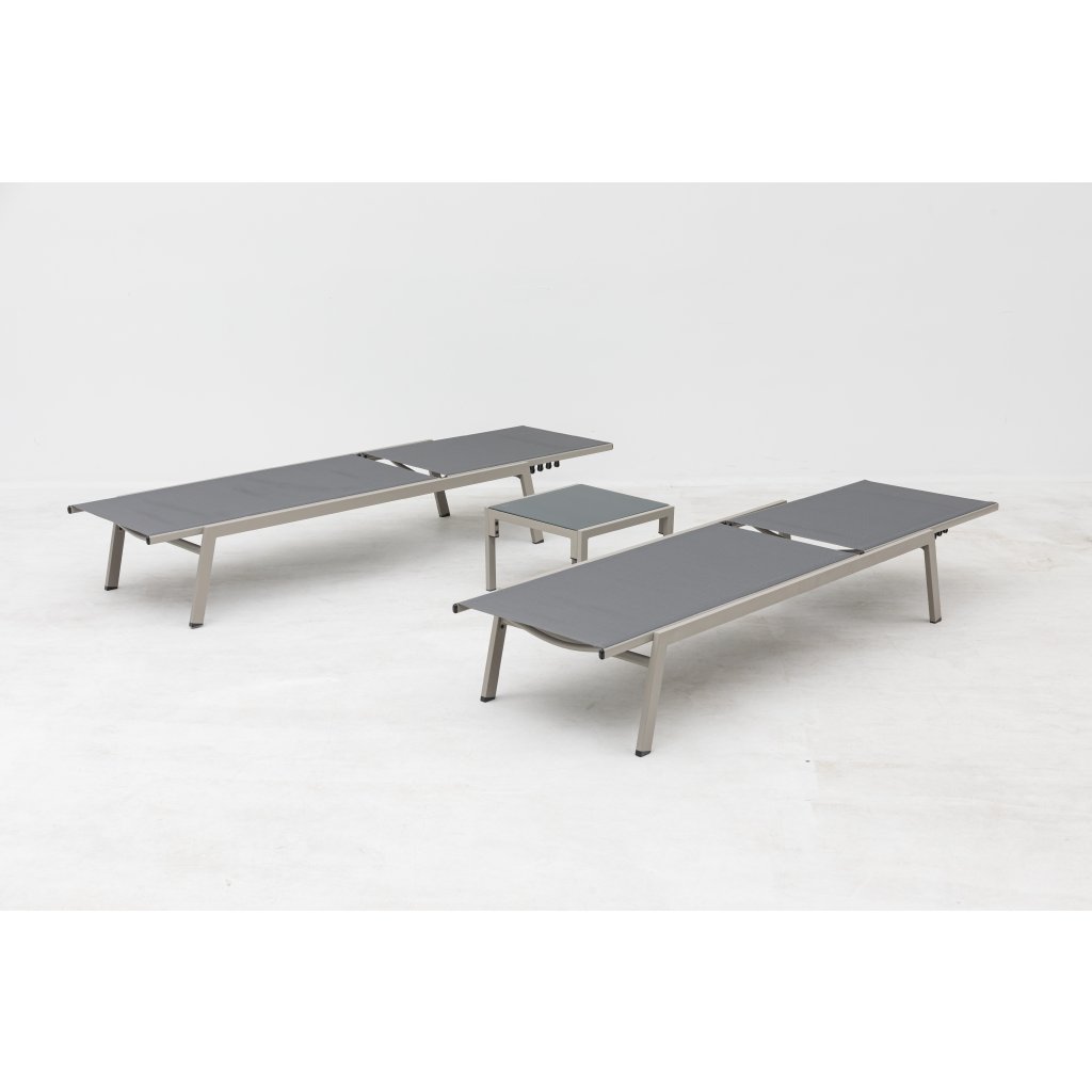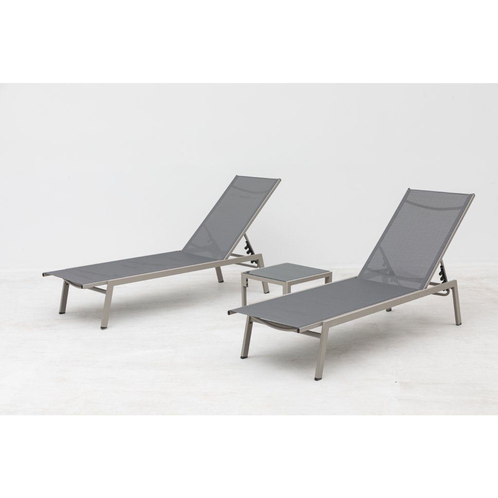 Užite si slnečné dni naplno so súpravou dvoch polohovateľných lehátok a odkladacieho stolíka, ktorá je ideálnou voľbou na relaxáciu na záhrade, terase alebo pri bazéne. Tento elegantný a praktický komplet spája komfort a moderný dizajn, ktorý skvele zapadne do akéhokoľvek vonkajšieho priestoru.