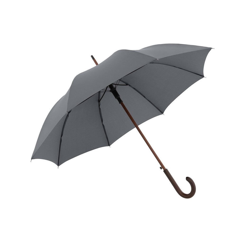 Rovný dáždnik. Konštrukcia dáždnika je vyrobená zo sklolaminátu a dreva, čo zaručuje pevnosť a stabilitu. Polyesterový poťah je odolný voči zmenám vlhkosti a teplôt, nezráža sa. Veľká strecha.