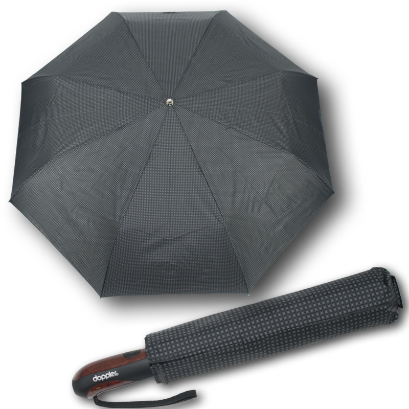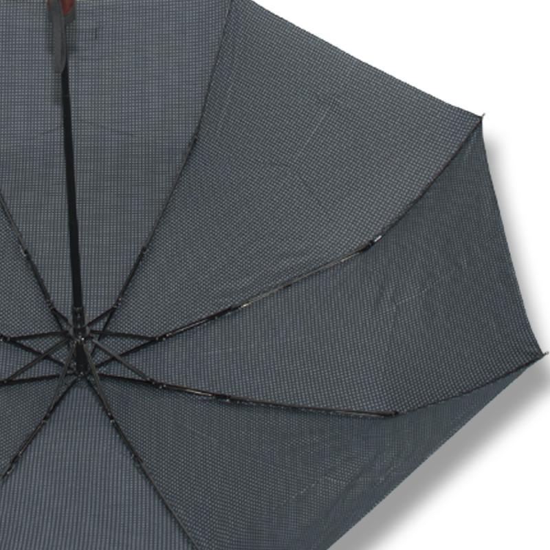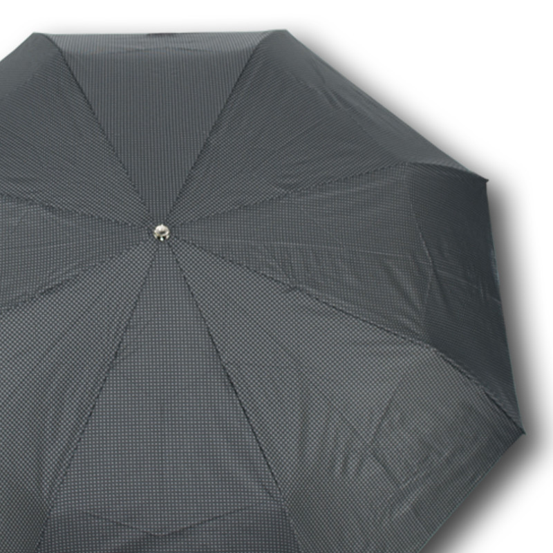 Partnerský, plne automatický skladací dáždnik. Poťah čierny so šedými pruhmi. Veľmi kvalitná konštrukcia zo sklolaminátu, ocele a karbónu. Posledné dva diely zo sklolaminátu. Pri prevrátení dáždnika vetrom nedôjde k jeho poškodeniu, dáždnik sa ľahko preklopí späť do pôvodnej polohy. Veľká strecha a praktické púzdro na zips. Polyesterový poťah je odolný voči zmenám vlhkosti a teplôt, nezráža sa.