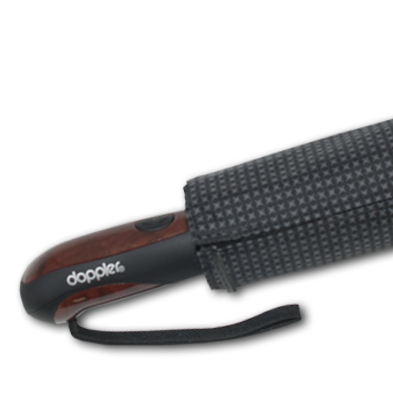Partnerský, plne automatický skladací dáždnik. Poťah čierny so šedými vzorom. Veľmi kvalitná konštrukcia zo sklolaminátu, ocele a karbónu. Posledné dva diely zo sklolaminátu. Pri prevrátení dáždnika vetrom nedôjde k jeho poškodeniu, dáždnik sa ľahko preklopí späť do pôvodnej polohy. Veľká strecha a praktické púzdro na zips. Polyesterový poťah je odolný...