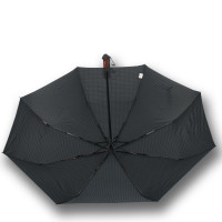Partnerský, plne automatický skladací dáždnik. Poťah čierny so šedými pruhmi. Veľmi kvalitná konštrukcia zo sklolaminátu, ocele a karbónu. Posledné dva diely zo sklolaminátu. Pri prevrátení dáždnika vetrom nedôjde k jeho poškodeniu, dáždnik sa ľahko preklopí späť do pôvodnej polohy. Veľká strecha a praktické púzdro na zips. Polyesterový poťah je odolný...