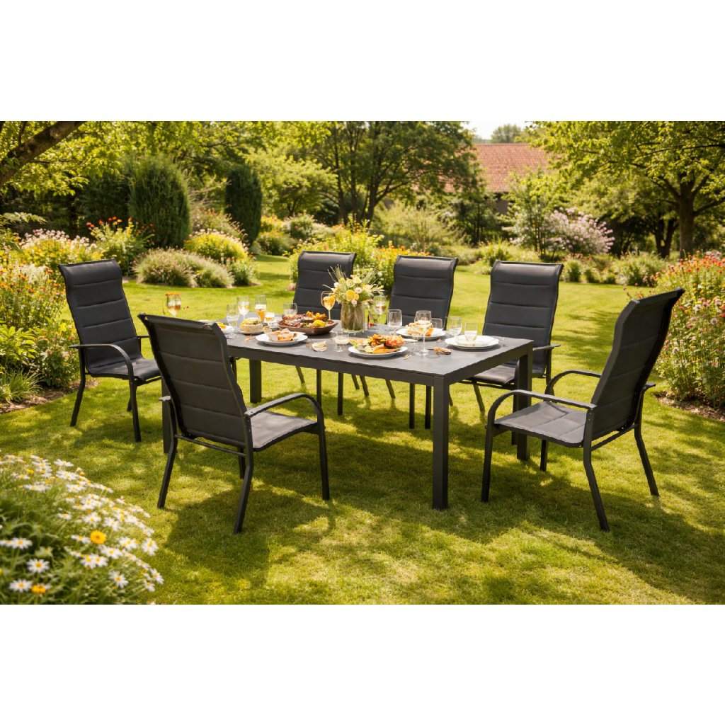 Záhradný stôl PICASO vyniká pevnou hliníkovou konštrukciou v antracitovej farbe a doskou z HPL materiálu, ktorý je známy svojou vysokou odolnosťou proti poškriabaniu, vlhkosti a teplotným výkyvom. Doska má bezšvový povrch, je farebne stála a ľahko sa udržuje, čo oceníte pri každodennom používaní. Vďaka rozmerom 160 × 90 cm poskytuje dostatok priestoru pre pohodlné stolovanie až šiestich osôb a vďaka nadčasovému dizajnu pôsobí veľmi elegantne.