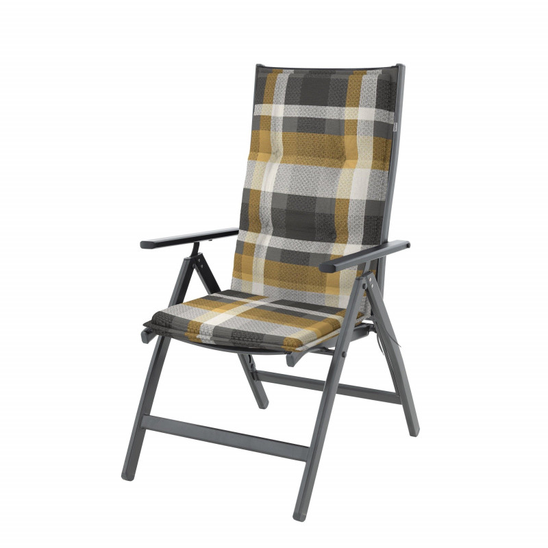 Poduška s vysokou opierkou na záhradný nábytok rady LIVING je v prevedení s obšitým lemom, prešitý krúžkovo 4x v operadle. Uchytenie je pomocou posuvnej spony. Vďaka spone si môžete nastaviť veľkosť podľa rozmeru a druhu stoličky, spona je pevná a nevyťahuje sa. Upevnenie sedadla je pomocou dvoch šnúrok v ohybe podušky. Sila podušky je optimálna pre všetky druhy stoličiek. Prevedenie je vhodné aj do náročných podmienok kaviarní, záhradiek a reštaurácií. Poťah je nesnímateľný.