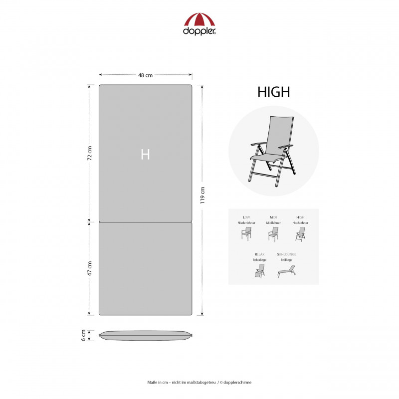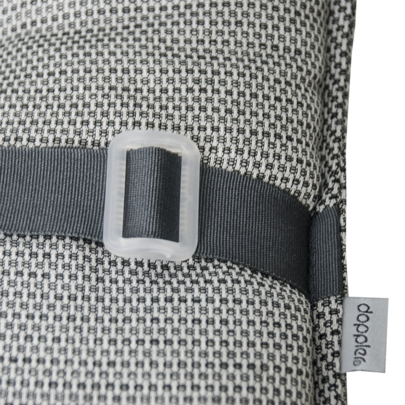 Poduška s vysokou opierkou na záhradný nábytok rady STAR je v prevedení s obšitým lemom. Poduška je 4x krúžkovo prešitá v operadle. Uchytenie je pomocou posuvnej spony. Vďaka spone si môžete nastaviť veľkosť podľa rozmeru a druhu stoličky, spona je pevná a nevyťahuje sa. Upevnenie sedadla je pomocou dvoch šnúrok v ohybe podušiek. Poťah je nesnímateľný.