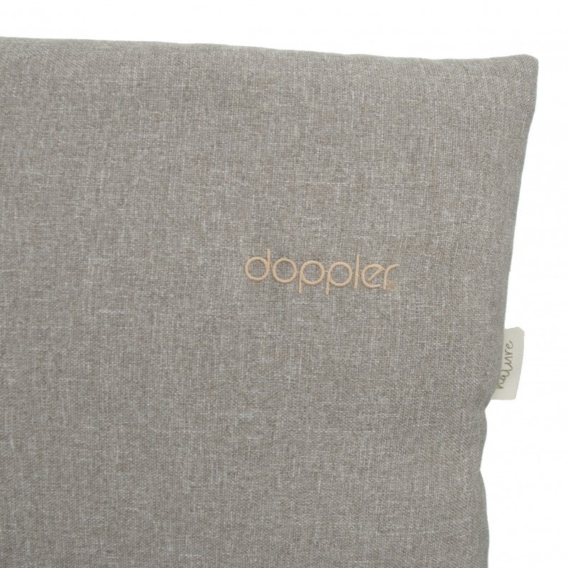 Poduška s vysokou opierkou rady NATURE. Nature, ako názov vypovedá, je poduška vyrábaná s ohľadom na prírodu a ekológiu, je z udržateľnej tkaniny z recyklovaných PET fliaš a zdobený výšivkou Doppler na operadle podušky. Uchytenie pomocou pevnej gumy a šnúrok v ohybe podušky. Prevedenie je vhodné aj do namáhavejších podmienok kaviarní, záhradiek a reštaurácií. Poduška je v prevedení so zipsom, poťah je snímateľný a je možné ho ručne prať.