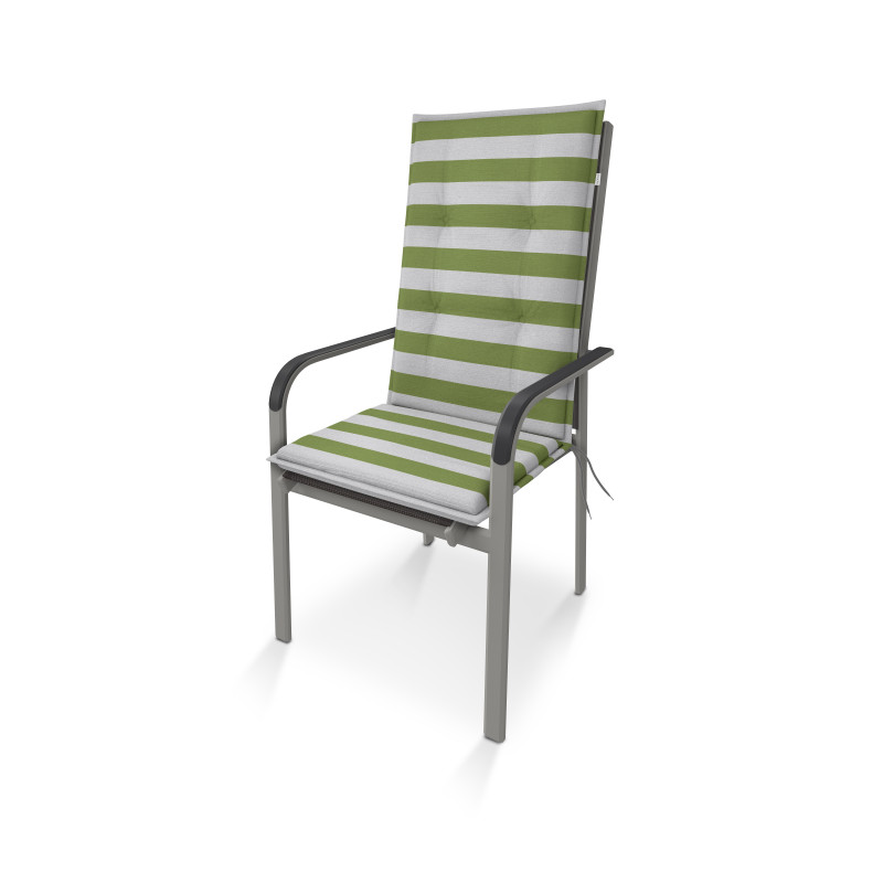 Poduška s vysokou opierkou rady LIVING je v prevedení s obšitým lemom, prešitý krúžkovo 4x v operadle. Uchytenie je pomocou posuvnej spony. Vďaka spone si môžete nastaviť veľkosť podľa rozmeru a druhu stoličky, spona je pevná a nevyťahuje sa. Upevnenie sedadla je pomocou dvoch šnúrok v ohybe podušky. Sila podušky je optimálna pre všetky druhy stoličiek. Prevedenie je vhodné aj do náročných podmienok kaviarní, záhradiek a reštaurácií. Poťah je nesnímateľný.