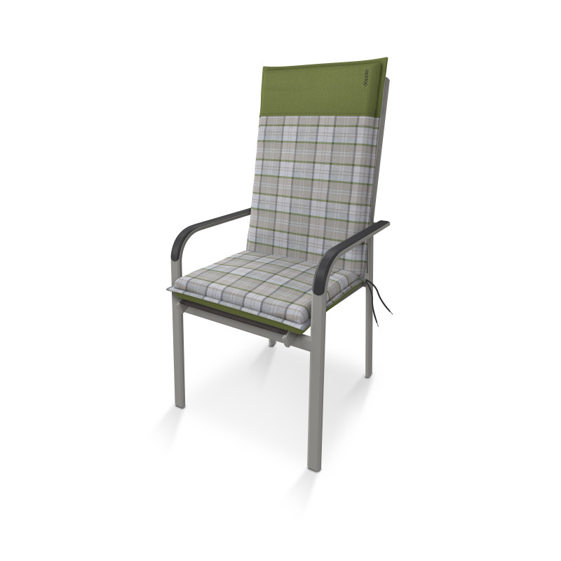Poduška s vysokou opierkou rady CASA. Elegantný poduška v módnom odtieni, zdobený výšivkou Doppler na operadle. Podušla je v prevedení s obšitým lemom, bez prešitia. Uchytenie je pomocou posuvnej spony. Vďaka spone si môžete nastaviť veľkosť podľa rozmeru a druhu stoličky, spona je pevná a nevyťahuje sa. Upevnenie sedadla je pomocou dvoch šnúrok v ohybe podušky. Poťah je ošetrený špeciálnou impregnáciou proti plesni a špine. Vďaka tejto impregnácii zostávajú nečistoty na povrchu impregnácie a nedostávajú sa do jednotlivých vlákien poťahu a látka sa tak ľahko čistí iba navlhčenou handričkou alebo hubkou a poduška je odolnejší voči vlhkosti. Pozor, poduška nie je nepremokavá. Prevedenie je vhodné aj do náročných podmienok kaviarní, záhradiek a reštaurácií. Poťah je nesnímateľný.