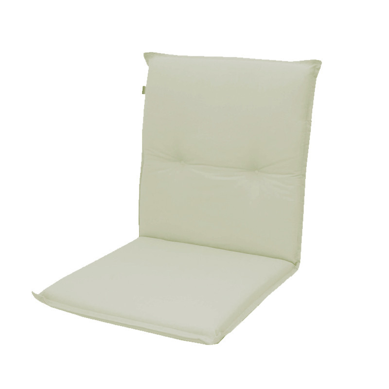 Poduška s nízkou opierkou na záhradný nábytok rady LIVING je v prevedení s obšitým lemom, prešitá krúžkovo 2x v operadle. Uchytenie je pomocou posuvnej spony. Vďaka spone si môžete nastaviť veľkosť podľa rozmeru a druhu stoličky, spona je pevná a nevyťahuje sa. Upevnenie sedadla je pomocou dvoch šnúrok v ohybe podušiek.Sila podušky je optimálna pre všetky druhy stoličiek. Prevedenie je vhodné aj do náročných podmienok kaviarní, záhradiek a reštaurácií. Poťah je nesnímateľný.