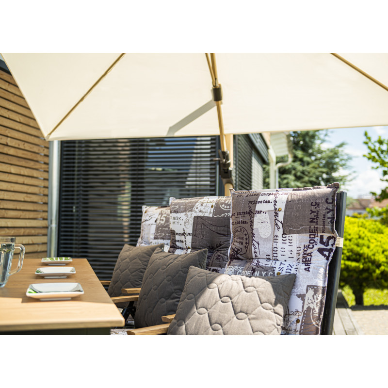 Poduška s nízkou opierkou na záhradný nábytok rady FUSION je v prevedení s obšitým lemom. Exkluzívny motív - prešitie celej plochy podušky. Uchytenie je pomocou posuvnej spony. Vďaka spone si môžete nastaviť veľkosť podľa rozmeru a druhu stoličky, spona je pevná a nevyťahuje sa. Upevnenie sedadla je pomocou dvoch šnúrok v ohybe podušky. Sila podušky je...