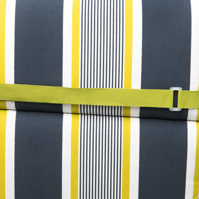 Poduška s vysokou opierkou na záhradný nábytok rady SPIRIT je v prevedení s obšitým lemom na okraji cca 1 cm, opierka podušky je priečne ozdobne prešitá, s nastaviteľnou posuvnou sponou. Vďaka spone si môžete nastaviť veľkosť podľa rozmeru a druhu stoličky, spona je pevná a nevyťahuje sa. Upevnenie sedadla k záhradnému nábytku je pomocou dvoch šnúrok v...
