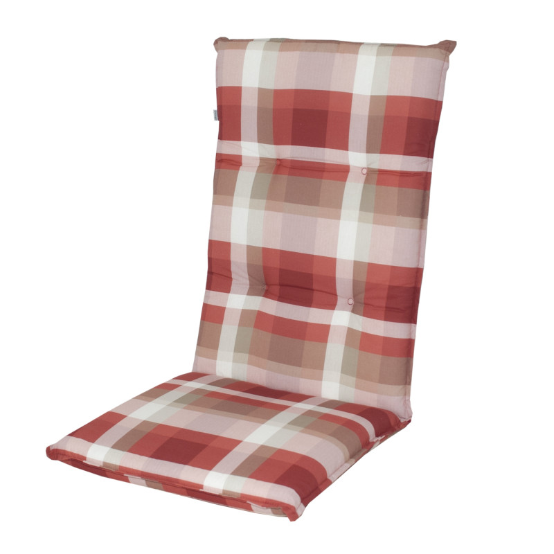 Poduška s vysokou opierkou na záhradný nábytok rady LIVING je v prevedení s obšitým lemom, prešitý krúžkovo 4x v operadle. Uchytenie je pomocou posuvnej spony. Vďaka spone si môžete nastaviť veľkosť podľa rozmeru a druhu stoličky, spona je pevná a nevyťahuje sa. Upevnenie sedadla je pomocou dvoch šnúrok v ohybe podušky. Sila podušky je optimálna pre všetky druhy stoličiek. Prevedenie je vhodné aj do náročných podmienok kaviarní, záhradiek a reštaurácií. Poťah je nesnímateľný.