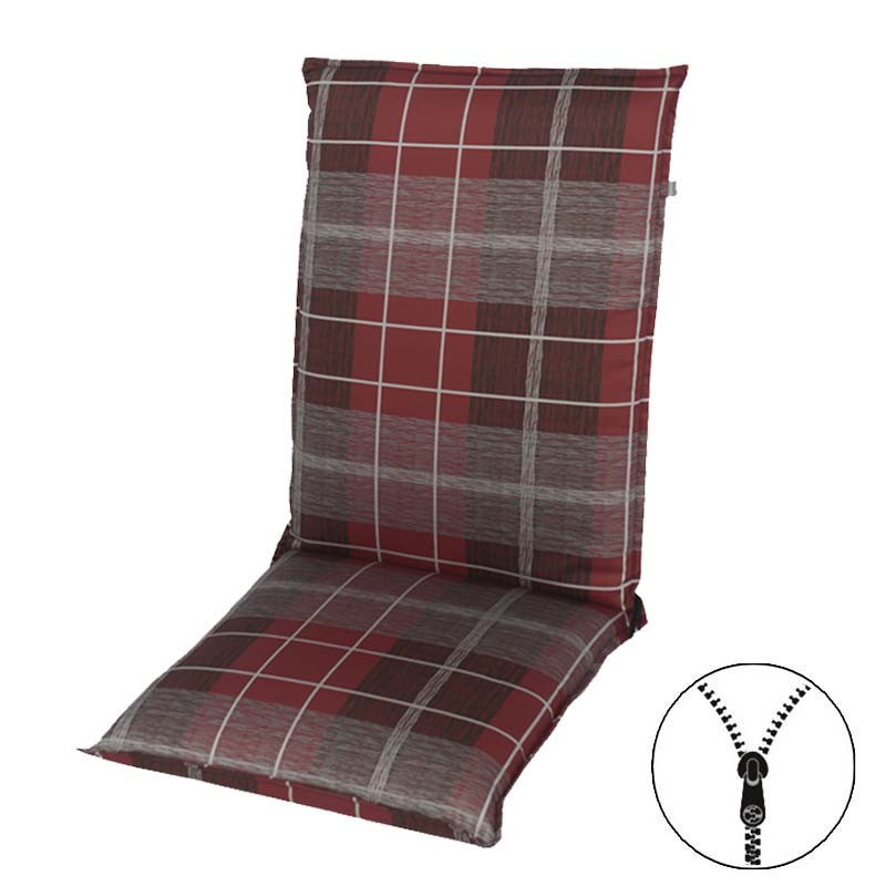 Poduška s vysokou opierkou na záhradný nábytok rady LIVING je v prevedení s obšitým lemom, bez prešitia v operadle. Uchytenie je pomocou posuvnej spony. Vďaka spone si môžete nastaviť veľkosť podľa rozmeru a druhu stoličky, spona je pevná a nevyťahuje sa. Upevnenie sedadla je pomocou dvoch šnúrok v ohybe podušky. Sila podušky je optimálna pre všetky druhy stoličiek. Prevedenie je vhodné aj do náročných podmienok kaviarní, záhradiek a reštaurácií. Poduška je v prevedení so zipsom, poťah je snímateľný a je ho možné prať.