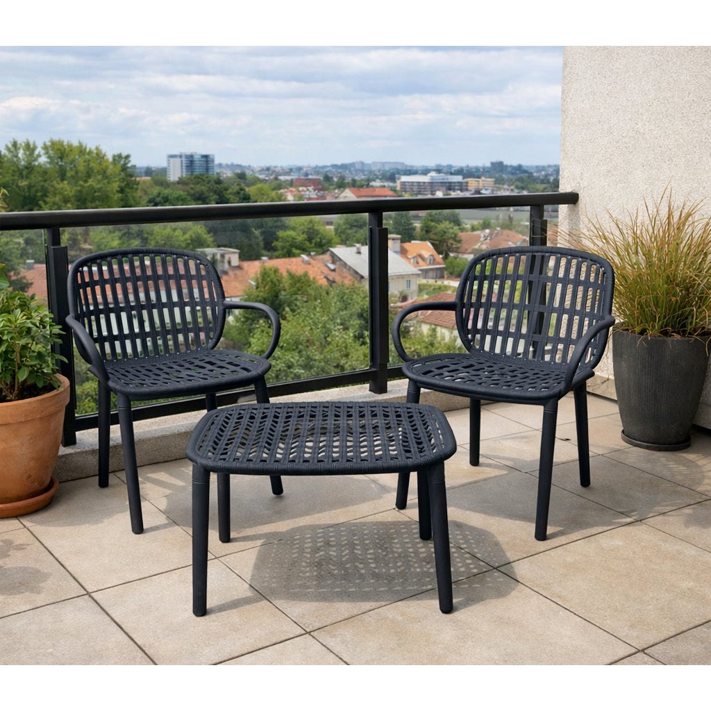Praktická plastová súprava POLIKORO bude skvelým doplnkom na Váš balkón, lodžiu či menšiu terasu. Veľkou prednosťou súpravy je ľahká údržba vďaka polypropylénu, z ktorého je celá súprava vyrobená. Polypropylén je odolný voči UV žiareniu aj poveternostným vplyvom. Súprava má pevné a stabilné prevedenie v čiernej farbe.