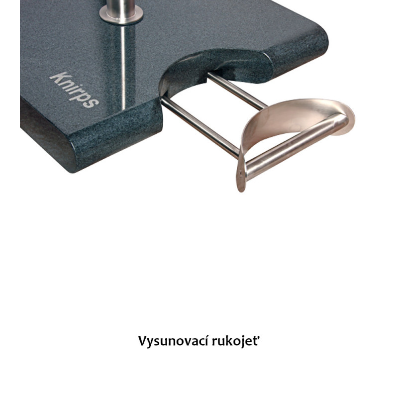 Knirps 50 kg je prémiový žulový stojan s kolieskami a vysúvacou rukoväťou.
